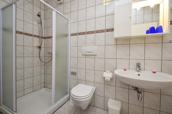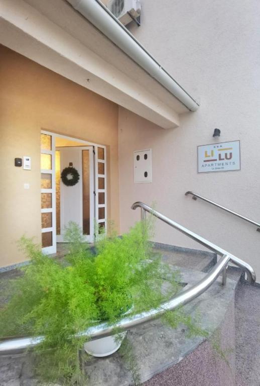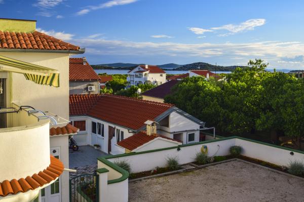 Li-LU Apartment (Villa Sanja) ist ein modernes Gebäude in einer der besten Lagen in Vodice, 350 Meter vom Strand entfernt, mit 7 Apartments mit Balkon oder Terrasse. Sechs Apartments verfügen über einen wunderschönen Meerblick. Die Apartments sind modern eingerichtet und äußerst geräumig. 5 Apartment für zwei Personen sind 38 m² groß – bestehend aus einem Schlafzimmer, einem Wohnzimmer mit Küche mit Sofa und einem Balkon. 2 Appartement für 2 Personen 50 m² mit Wohnzimmer, Küche, Schlafzimmer, Bad und großem Balkon oder Terrasse. Parken auf dem Grundstück oder am Haus • ca. 15 Gehminuten zum Zentrum von Vodice • ca. 5 Gehminuten zum Strand.