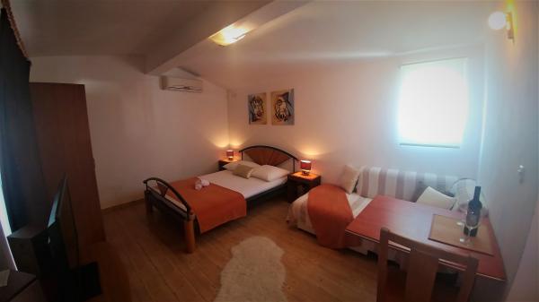 Mit Blick auf die Adria Apartments Mario ist ruhig nur 6 Minuten zu Fuß gesetzt von der Vodice Altstadt und dem Strand entfernt. Es bietet kostenloses WLAN und klimatisierte Apartments mit Balkon oder Terrasse und TV. Apartments Mario hat einen Grill für die Gäste. Es gibt eine Küche mit modernen Geräten ausgestattet. Eigenes Bad mit Dusche und Fön. Verschiedene Restaurants, Bars und Geschäfte befinden sich in unmittelbarer Nähe. Das historische Zentrum ist voll von Sehenswürdigkeiten wie die Kirche des Heiligen Kreuzes, Coric Turm, das Heiligtum Unserer Lieben Frau von Carmel. Der beliebteste Strand genannt der Blaue Strand, 700 m. Die Bushaltestelle ist 200 Meter entfernt.