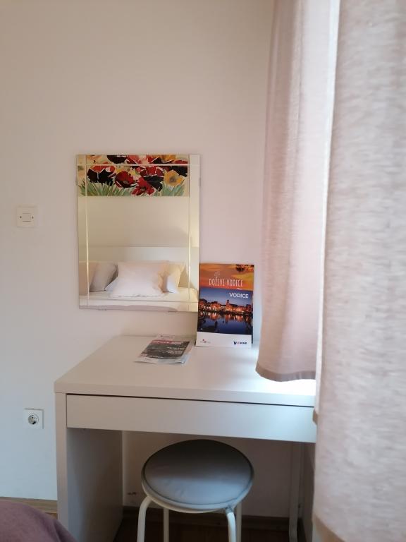 Die Apartments Marita befinden sich im ersten Stock eines Einfamilienhauses in einer ruhigen Straße (Stablinac XI) in Vodice. Sie liegen in der Nähe der Kieselstrände Imperial und Olympia Hangar mit natürlichem Schatten und zahlreichen Sport-, Freizeit- und Unterhaltungsmöglichkeiten, die in etwa 10 Gehminuten (ca. 800 Meter) erreichbar sind. Das nächste Geschäft erreichen Sie in 5 Minuten und das Zentrum von Vodice in 20 Minuten entlang der Strandpromenade. Kostenloses WLAN und ein Parkplatz im privaten Hof stehen den Gästen zur Verfügung.