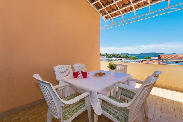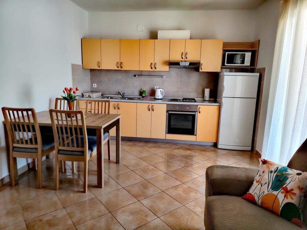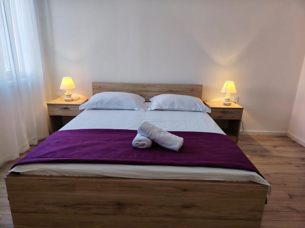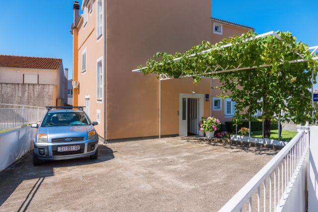 Die Apartments Marko befinden sich in der Blata-Straße, einem ruhigen Teil von Vodice in der Nähe des Hotels Punta. Der Hauptstrand Plava Plaža ist nur 100 m entfernt, das Stadtzentrum erreichen Sie nach 300 m. Wir bieten drei Apartments an: Apartment Ap 4+2, Apartment Ap 4+1 und Apartment Ap 2. Apartment 4+2 verfügt über zwei Schlafzimmer mit je einem Doppelbett, ein Badezimmer, ein Wohnzimmer mit Schlafcouch, eine Küche und eine Terrasse. Apartment 4+1 bietet ebenfalls zwei Schlafzimmer mit je einem Doppelbett, ein Wohnzimmer mit Schlafcouch, eine Küche, ein Badezimmer und eine Terrasse. Apartment Ap 2 umfasst ein Schlafzimmer mit Doppelbett, ein Badezimmer, eine Küche mit Essbereich, ein Wohnzimmer mit Schlafcouch und einen Balkon mit einem Esstisch für zwei Personen. Jedes Apartment ist mit einer Waschmaschine und einer Klimaanlage ausgestattet. Parkplätze stehen im Innenhof zur Verfügung. Ein Grillplatz kann von den Gästen genutzt werden. Ab 4 Personen: 20,00 EUR pro Tag. Herzlich willkommen!