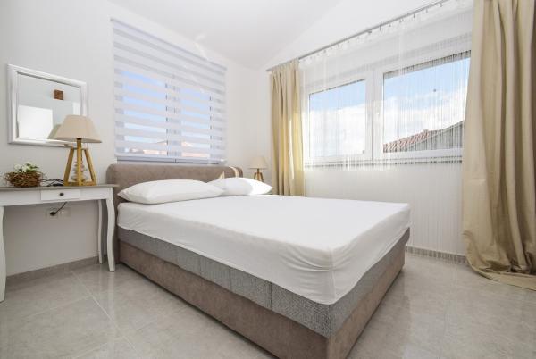 Schöne klimatisierte Apartments, neu nach modernen Standards ausgestattet, treffen und najzahtjenije, Hygiene gleichen einwandfrei. Die Wohnungen befinden sich in einer ruhigen Straße gelegen, mit einer großen Terrasse und einem schönen Pool. In der Nähe des Strandes in einem Kiefernwald, mit viel für Kinder und Erwachsene, sowie Hotels und Geschäften zu tun. Das Stadtzentrum und eine der schönsten Yachthafen an der Adria ist ein einfacher Spaziergang am Strand entlang, 5 Minuten.