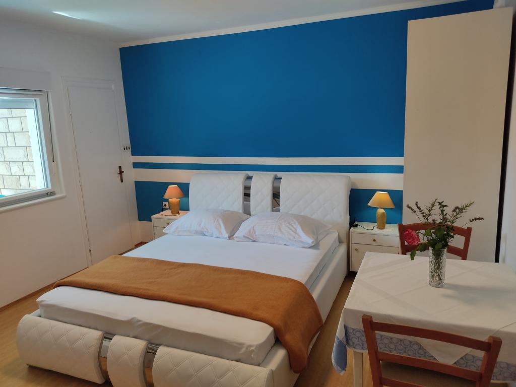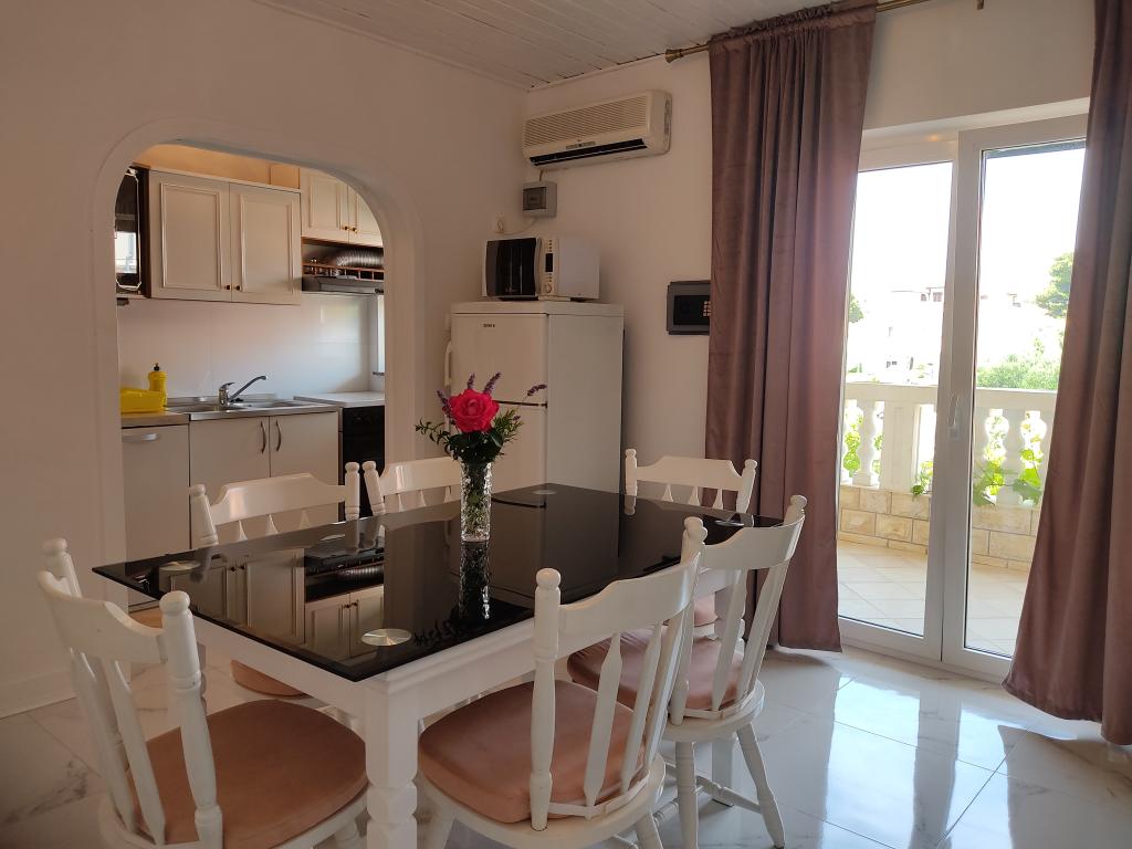 Unsere Wohnungen sind in einer ruhigen Straße gelegen, nur 2-3 Gehminuten von einem sehr schönen Strand (auch bestens für Kinder geeignet) entfernt. In nur 5 Gehminuten erreichen Sie das lebhafte Ortszentrum, mit allen Arten von Geschäften und Restaurants. Dank der großartigen Lage unsere Ferienwohnungen sind sehr geeignet für Familien mit kleinen Kindern. Alle unsere Ferienwohnungen sind sauber und komfortabel, mit Balkon oder Terrasse, mit Klimaanlage, Highspeed-Internetanschluss und Satelliten TV ausgestattet. Für diejenigen, die lange Grillabende mögen, auf der Terrasse direkt vor dem Haus, im Schatten unter dem Weinlaub stehen ein großer Esstisch und ein schöner, gemauerter Steingrill zur Verfügung. Ein Parkplatz für Ihren Wagen ist in unserem Hof vorhanden.