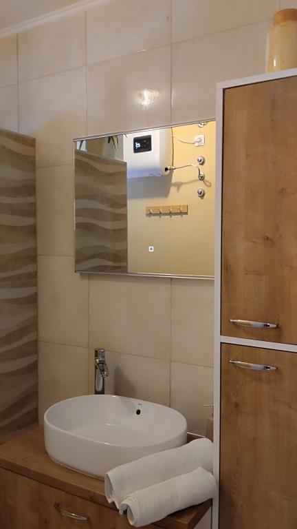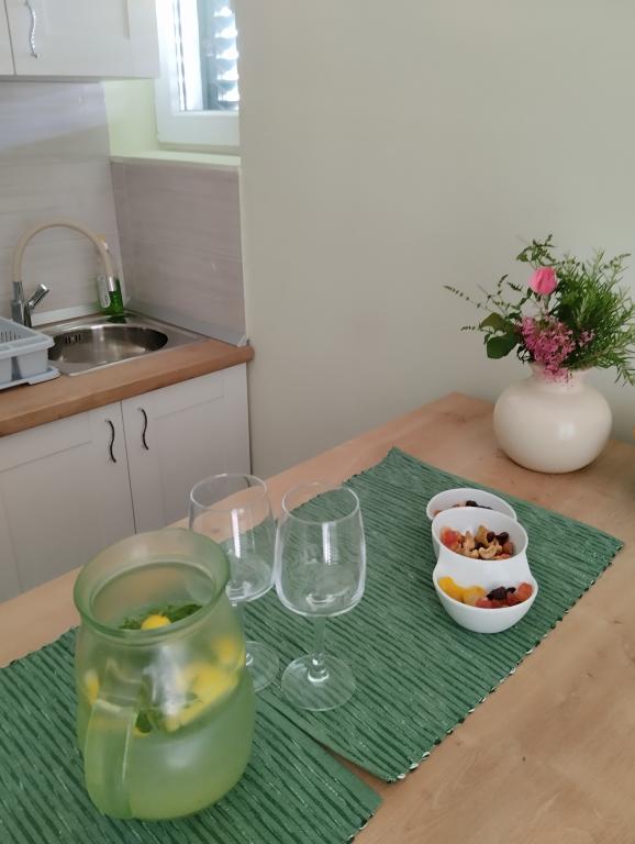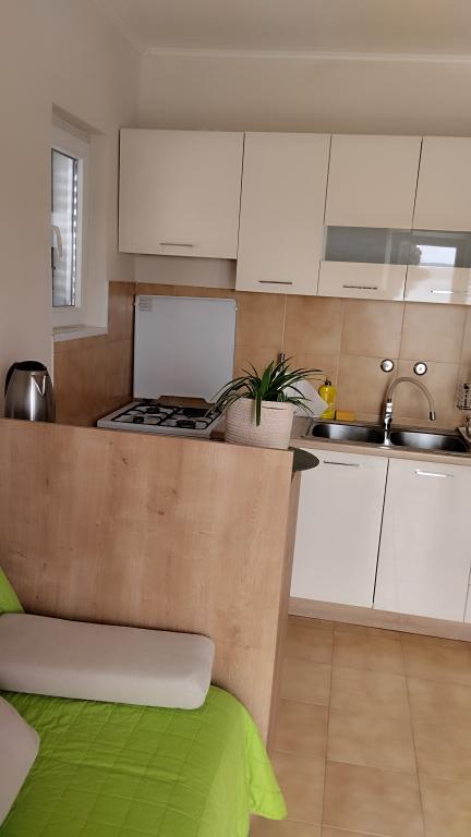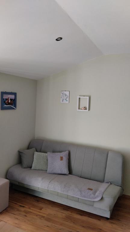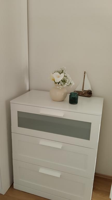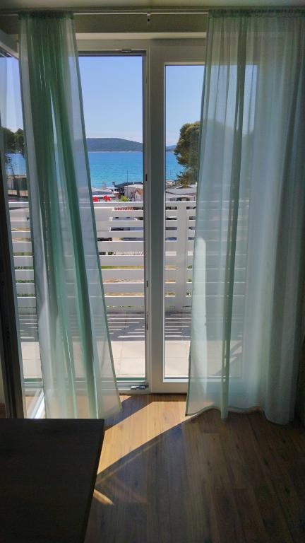 Zwei Wohnungen im zweiten Stock eines Einfamilienhauses direkt am Blue Beach. Die Zweizimmerwohnung wurde kürzlich renoviert und die Einzimmerwohnung erst letztes Jahr eingerichtet. Der Strand ist etwa 70 Meter vom Haus entfernt und das Stadtzentrum erreichen Sie nach 600 m. Am Strand gibt es zahlreiche gastronomische Einrichtungen und Angebote für Kinder sowie einen speziell eingerichteten Strand für Kinder. Der Strand vor dem Haus ist sandig, etwas weiter, etwa 20 Meter, ist er kieselig. Betreten der Wohnung. nach 12 Uhr möglich, Abreise bis 10 Uhr.