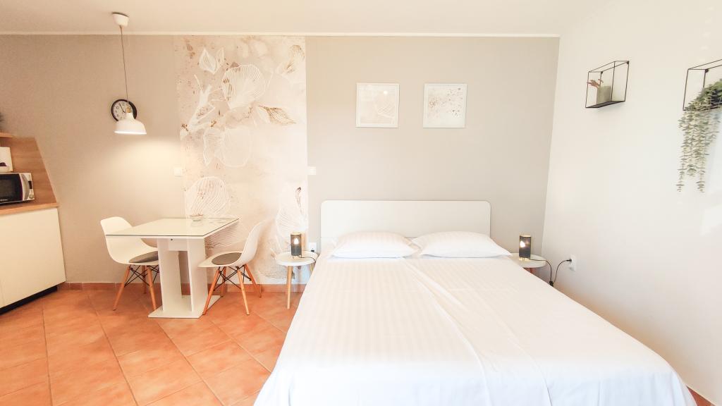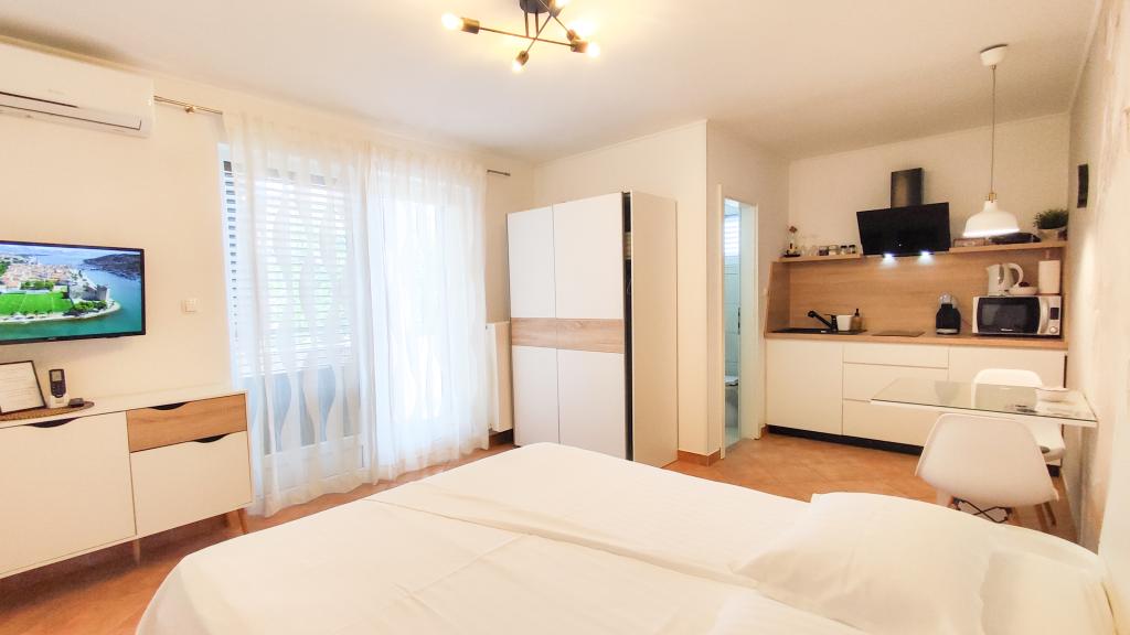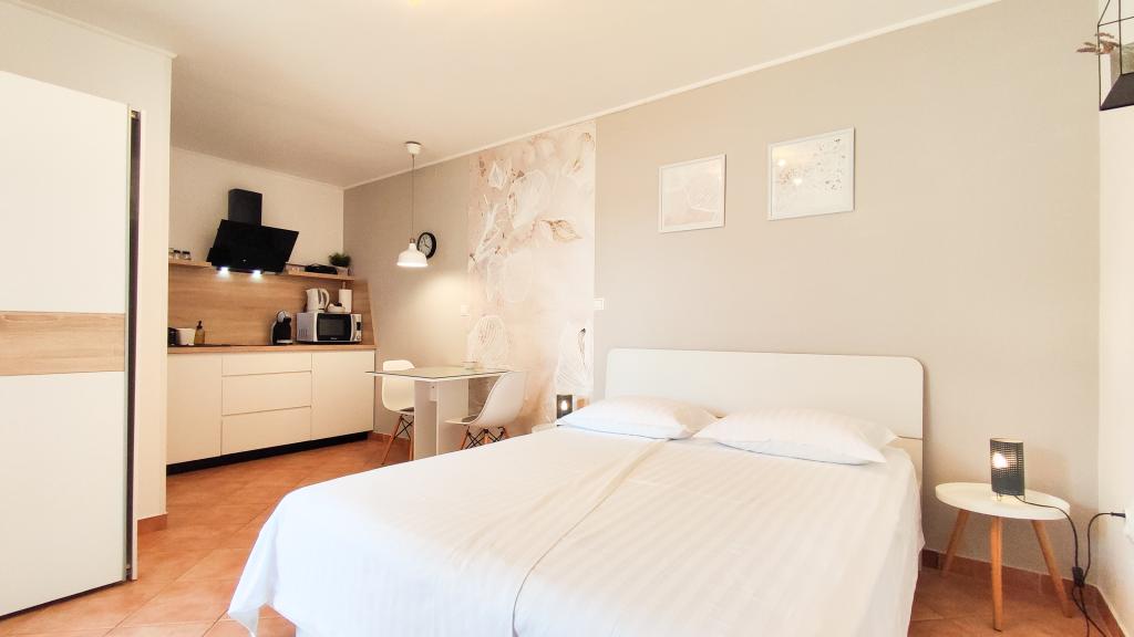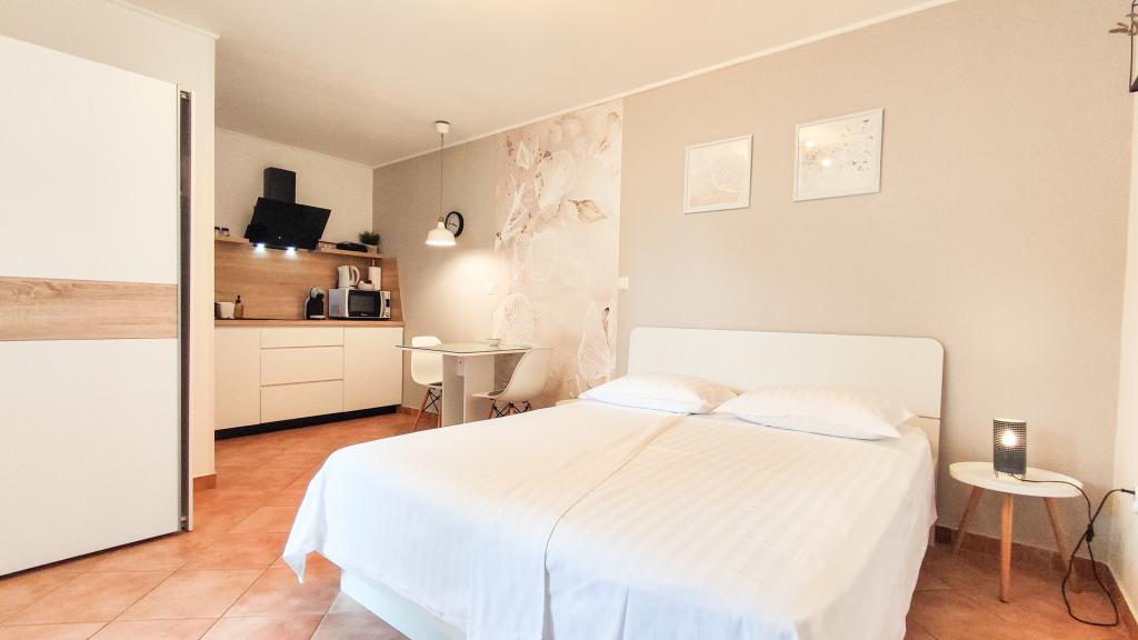 Wir haben A4 Deluxe gebucht. Das Apartment ist sehr großzügig geschnitten, verfügt über alles was man benötigt um sich wohl zu fühlen. Die Besitzerin Marija ist super nett. Hat uns mit Saft, Wein und frisch gepflügten Feigen verwöhnt. Ich kann diese Unterkunft absolut weiter empfehlen.