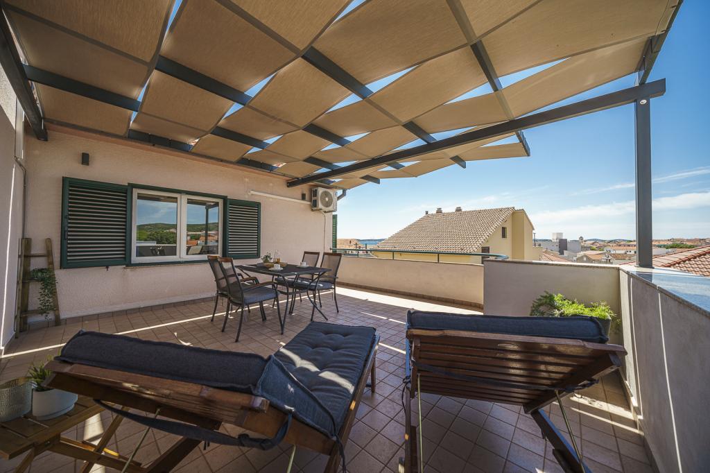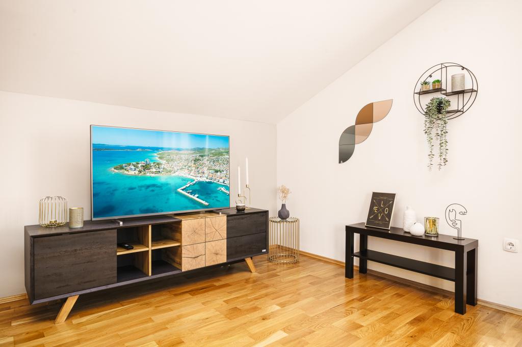 Willkommen in den Family Petrov Apartments! Wir bieten komfortable Unterkünfte in fünf modern ausgestatteten Apartments, ideal für kleinere Gruppen oder größere Familien, die einen erholsamen Urlaub verbringen möchten. Die Apartments befinden sich in zwei Familienhäusern mit jeweils eigenem Eingang im Erdgeschoss und im ersten Stock. Jedes Apartment verfügt über einen separaten Eingang und eine private, überdachte Terrasse. Unsere Lage ist ideal: Wir befinden uns in einer ruhigen Gegend, abseits von Lärm und Verkehr, und dennoch nur wenige Gehminuten vom Zentrum von Vodice und dem Kieselstrand Mala Vruje entfernt. In unmittelbarer Nähe finden Sie Supermärkte, Cafés, eine Bäckerei und eine Apotheke – alle Annehmlichkeiten des täglichen Bedarfs sind bequem erreichbar. Verbringen Sie Ihren Urlaub in ruhiger Umgebung, unweit von Strand und Stadtzentrum!