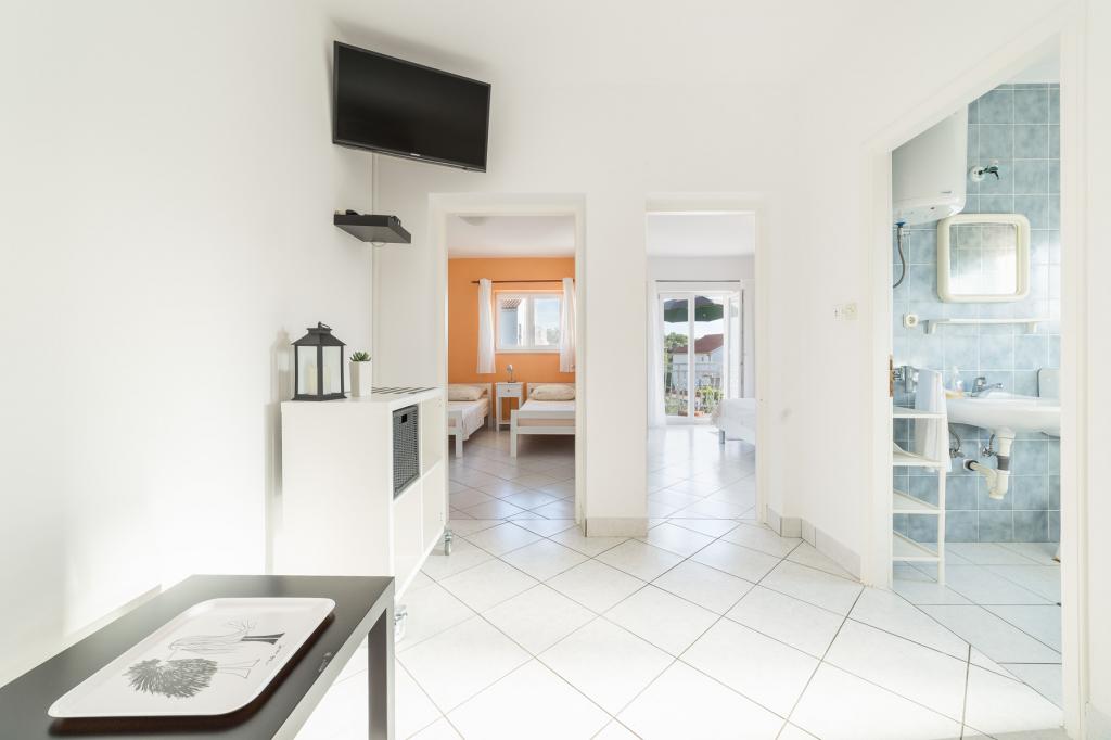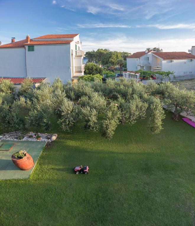 Die Apartments Salvia in Vodice liegen 30 m von einem Kieselstrand entfernt, zu dem ein gepflegter, verkehrsfreier Weg führt. Die schöne Promenade am Meer ist nur eine Minute zu Fuß entfernt und ihre Lage bietet Ihnen die Möglichkeit eines kompletten Urlaubs. Das erste Geschäft ist 2 Gehminuten entfernt und das Stadtzentrum und andere Einrichtungen der Stadt sind weniger als 5 Gehminuten entfernt. Die Apartments Salvia befinden sich in einem ruhigen Teil von Vodice, daher ist die Unterkunft ideal für Familien mit Kindern. Allen unseren Gästen steht an heißen Sommerabenden ein Parkplatz und ein wunderschöner Garten mit viel Grün, Blumen, Morgenvögeln und einer Brise zur Verfügung. Wir möchten Ihnen den bestmöglichen Urlaub bieten, damit wir als Ihre Gastgeber für alle Ihre Anfragen zur Verfügung stehen.