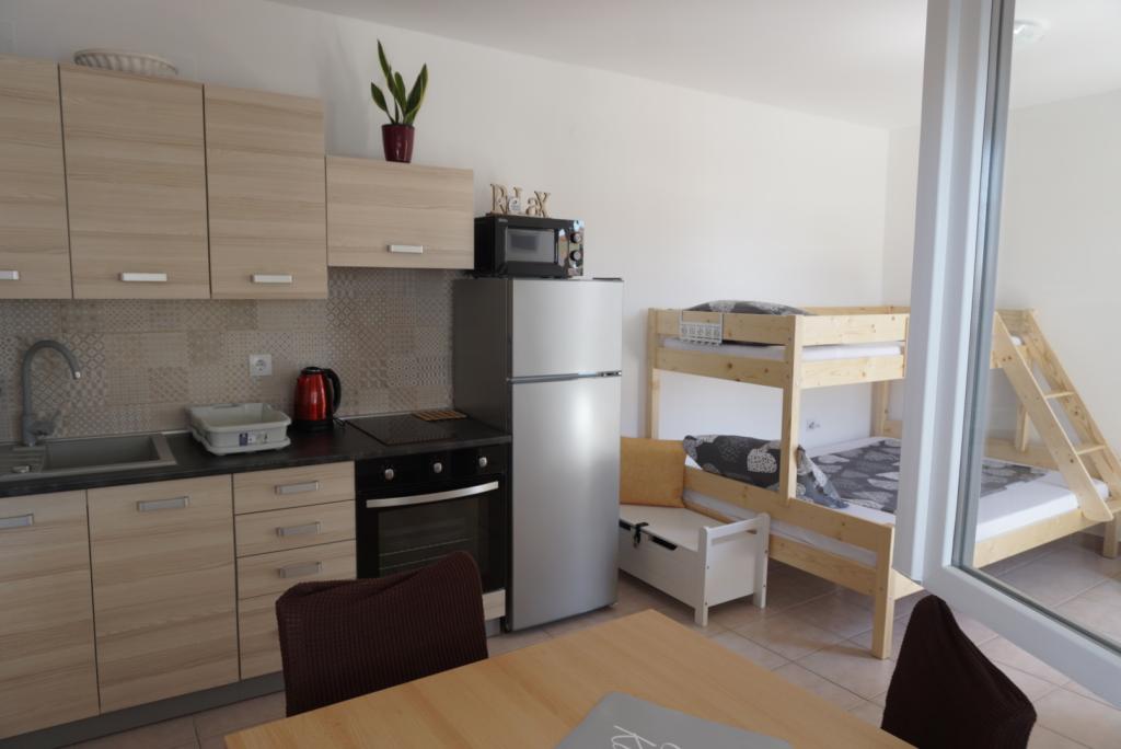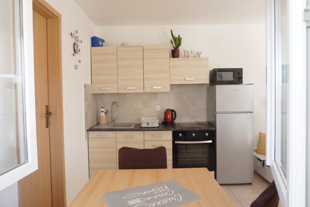 Willkommen in den Apartments Skledar! Entdecken Sie wahren Komfort in unseren frisch renovierten Apartments im Herzen von Vodice. Unsere Adresse, Ulica blata 10, liegt nur 200 Meter vom bezaubernden Blue Beach entfernt – die perfekte Wahl für Strandliebhaber. Zudem erreichen Sie das Stadtzentrum nach nur 350 Metern und genießen somit bequemen Zugang zum pulsierenden Stadtleben. Alles, was Sie brauchen, befindet sich in unmittelbarer Nähe, darunter ein Supermarkt nur 50 Meter entfernt. Ausstattung: Unsere frisch renovierten Apartments sind modern eingerichtet und bieten Ihnen Komfort und praktische Annehmlichkeiten. Jedes unserer drei Apartments verfügt über eine private Terrasse – Ihre persönliche Oase zum Entspannen und Genießen der ruhigen Umgebung. Meerblick: Obwohl unsere Schlafzimmer keinen direkten Meerblick bieten, haben Sie in einem unserer Apartments einen eingeschränkten Meerblick von der Küche und der Terrasse aus. Top-Lage: Unsere Apartments liegen in einer ruhigen Straße und bieten Ihnen einen erholsamen Rückzugsort nach einem erlebnisreichen Tag.