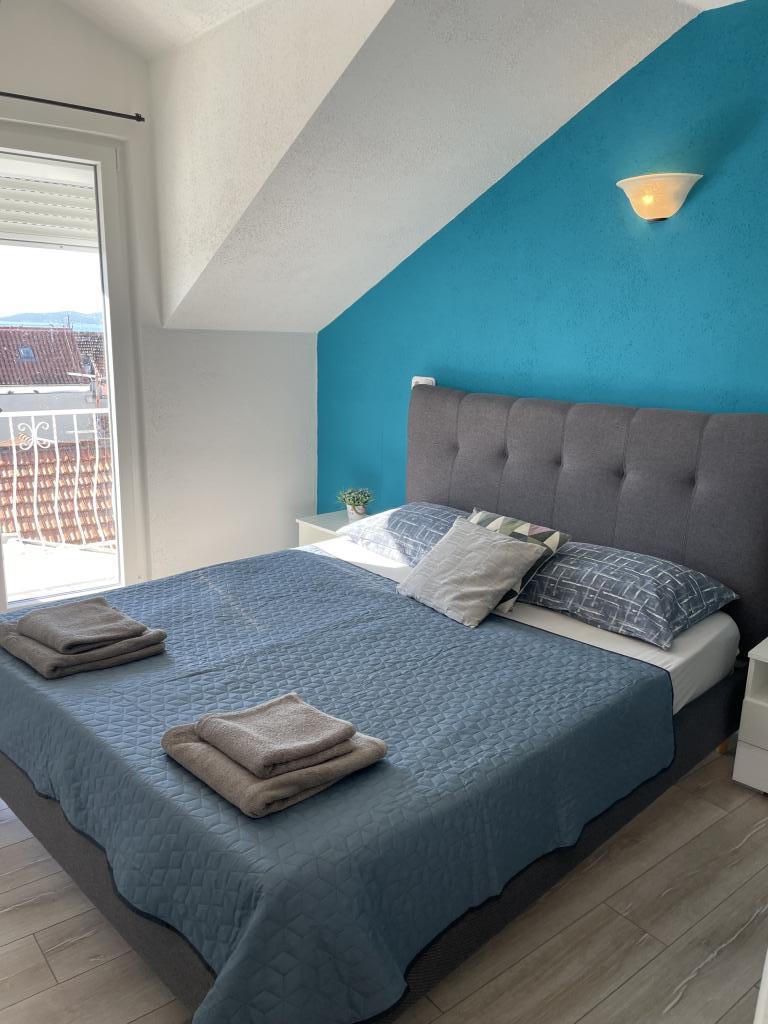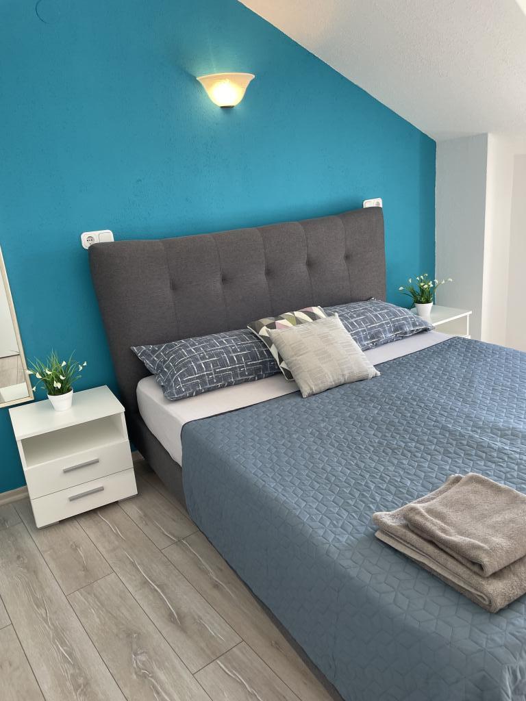 Vollständig und modern ausgestattete Apartments im Zentrum von Vodice, nur ca. 150 Meter vom Meer entfernt. Die Unterkunft liegt nur 1 Gehminute vom Zentrum und 5 Gehminuten vom Strand entfernt. Wir bieten ein Apartment mit Meerblick für 4+1 Personen mit zwei Doppelbetten in zwei Zimmern, einem Zustellbett für die 5. Person und einem Balkon mit herrlichem Meerblick. Außerdem stehen zwei Apartments für 2+1 Personen mit einem Doppelbett und einem Zustellbett zur Verfügung, eines davon mit Balkon. Sonderangebot für 6 und 9 Monate: Zahlen Sie 5 Nächte und erhalten Sie eine Nacht gratis! Kostenlose Parkplätze sind ebenfalls vorhanden. Willkommen im wunderschönen Vodice!