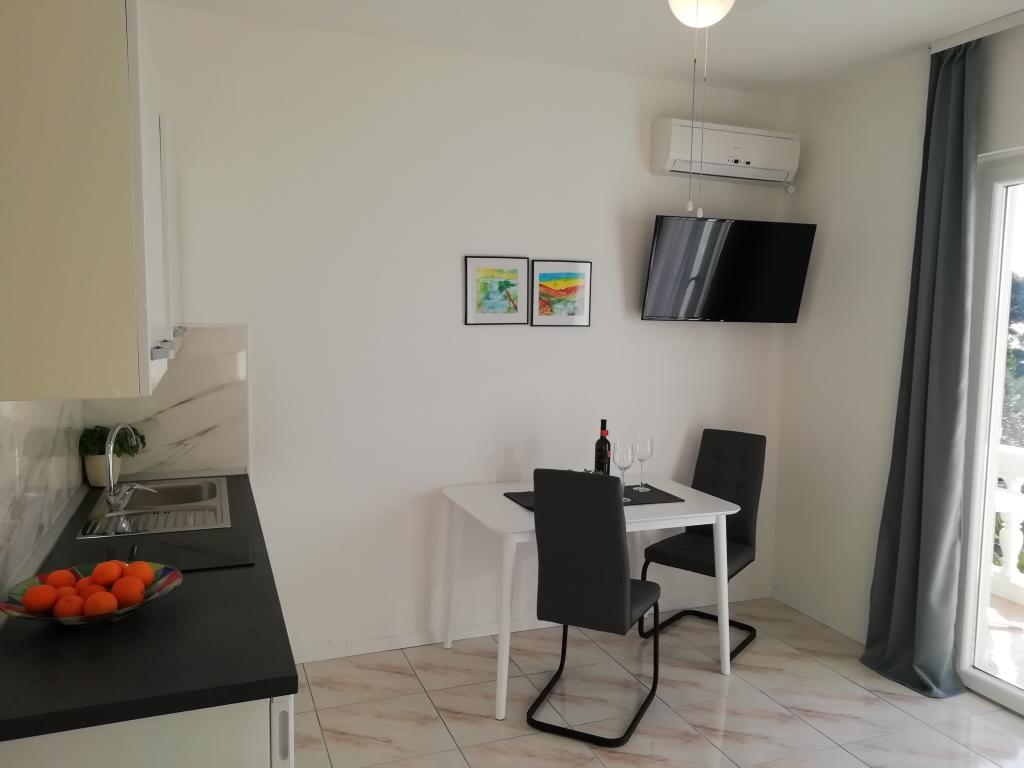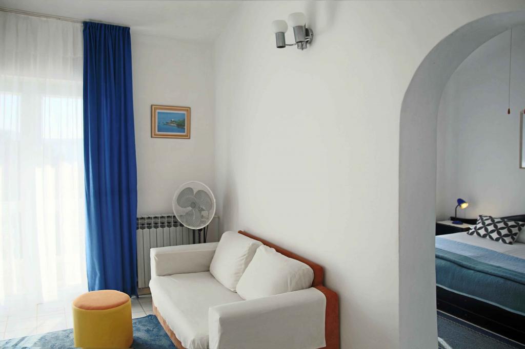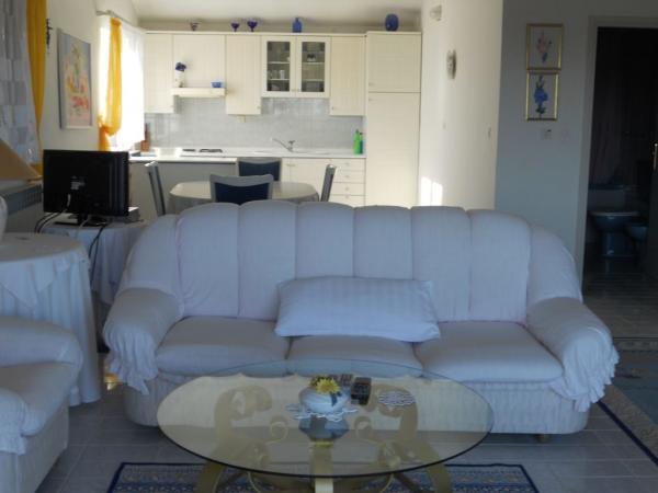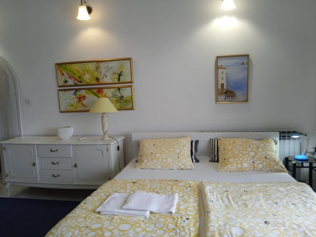 Kurtaxe ist im Preis inbegriffen.Ich möchte den Villenbesitzern für ihre Gastfreundschaft danken. Wir wohnten in einem wunderschönen Studio-Apartment. Alles ist sauber, ordentlich und bietet alles, was man für einen komfortablen Aufenthalt braucht. Perfekt klimatisiert, eine kleine neue und gut ausgestattete Küche, ein schönes, geräumiges Badezimmer und einen Balkon mit Meerblick. Alles ist auf die Bedürfnisse einer Person zugeschnitten und bietet alles, was man für einen echten Urlaub braucht. Weit weg vom Lärm, aber nah am Strand: Nur zwei Gehminuten entlang einer ebenen Straße und Sie sind am Strand. Der Platz ist landschaftlich gestaltet und bietet viel natürlichen Schatten, Cafés, Restaurants, Geschäfte … Die Besitzer sind wunderbar, nett und unaufdringlich, es hat uns an nichts gefehlt und nichts hat unsere Ruhe, Privatsphäre und unseren Urlaub gestört. Ein großes Plus ist ein großer Parkplatz im Hof mit Schatten, und das Auto steht an einem sicheren und bedingten Platz. Wir werden auf jeden Fall wieder in dieser Unterkunft übernachten.