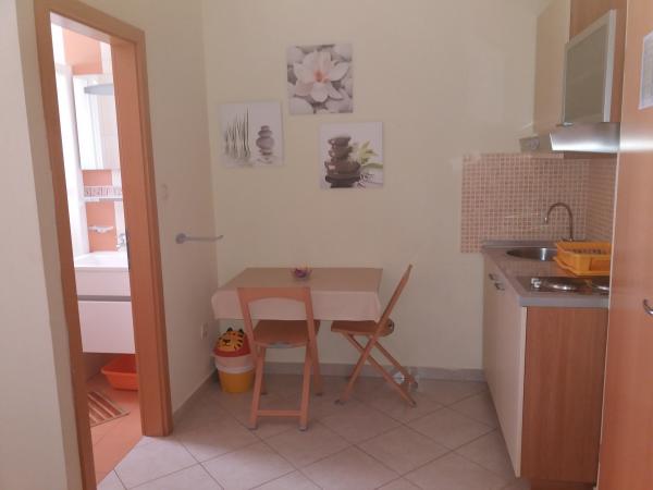 Einwöchigen Aufenthalt in gut ausgestattetes Studio ist ein echter Genuss. Wir können bestätigen, dass die Bilder sind echt. Er begrüßte uns war sauber und ordentlich Studio über dem wir begeistert waren. Der Besitzer ist sehr freundlich und gerne auf einen Kaffee und ein nettes Gespräch eingeladen werden. Der Strand ist ca. 7 Gehminuten entfernt, das durchaus akzeptabel ist. Für eine angenehme Abkühlung der Luft Pflege, ist gut Bonus auch ein LCD-TV. Priporočava all jene, die in der Führung ausruhen möchten!