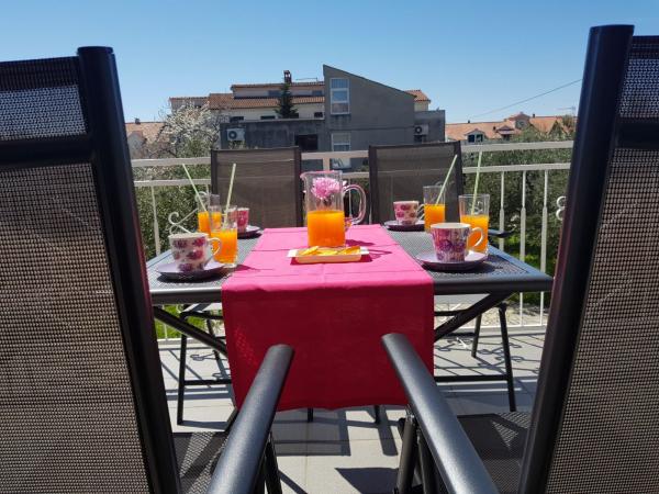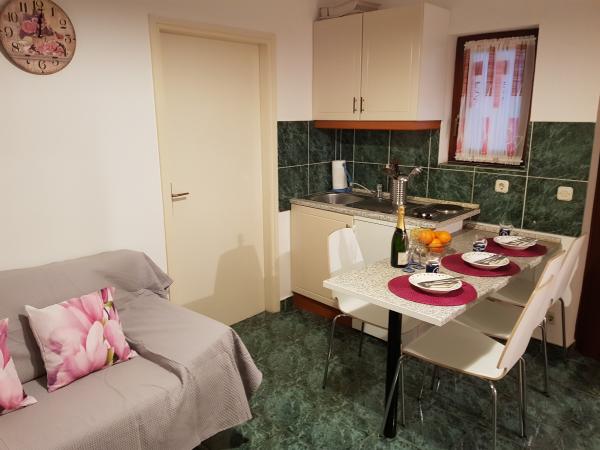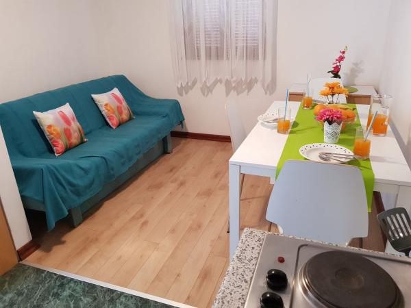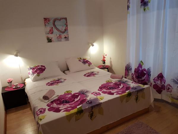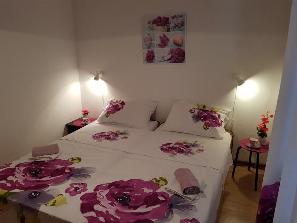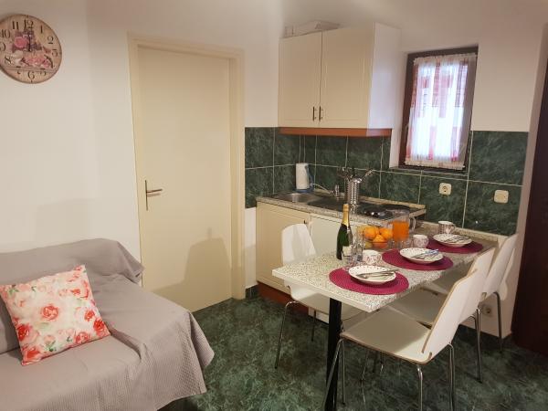 Die Apartments Zoric befinden sich im Stadtteil Lovetovo, etwas außerhalb des Zentrums von Vodice, einen 15-minütigen Spaziergang entlang des Meeres. Die Apartments befinden sich in einer ruhigen, grünen Umgebung von 900 m2, nur 100 Meter vom Kiesstrand entfernt. Alle Apartments sind klimatisiert und verfügen über eine Terrasse oder einen Balkon. Für die Gäste gibt es einen Parkplatz mit 10 Stellplätzen, einen Grill und ein Trampolin im Hof des Gebäudes und Beiboot. Wir bieten Ihnen einen angenehmen Aufenthalt in einer ruhigen Umgebung.
