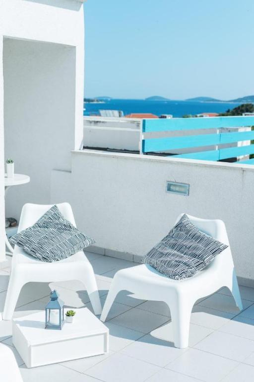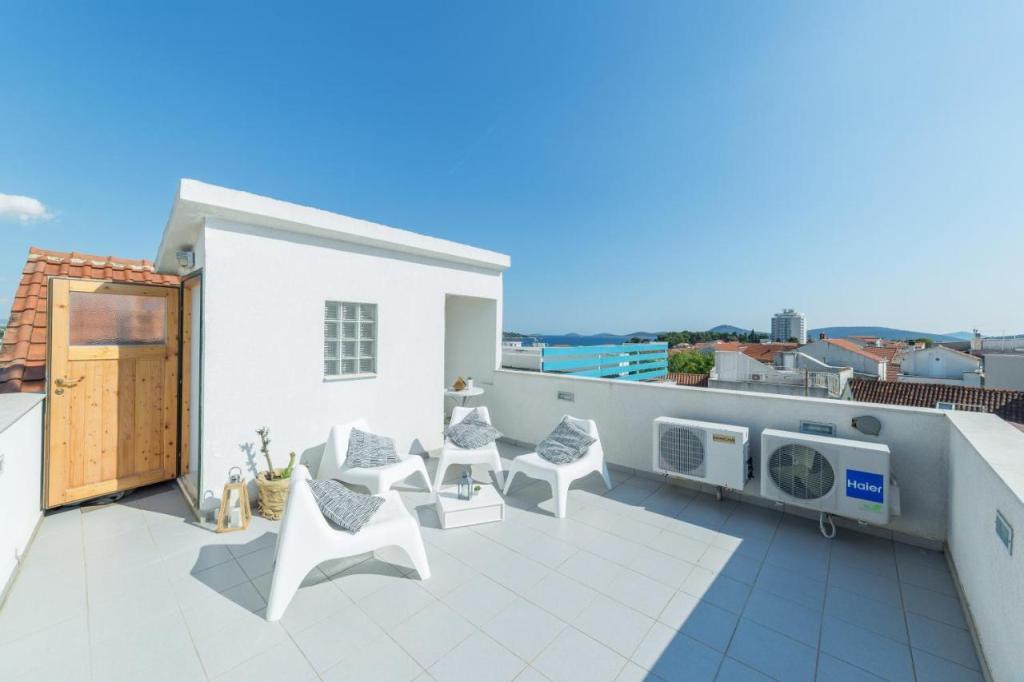 Das Ferienhaus Ljubica liegt im Zentrum von Vodice, 450 Meter vom Blue Beach und 800 Meter vom Strand Male Vrulje entfernt. Im Erdgeschoss des Hauses befinden sich eine voll ausgestattete Küche mit Esszimmer und ein Badezimmer. Im ersten Stock gibt es ein Zimmer mit einem Doppelbett und im zweiten Stock ein Zimmer mit einem Doppelbett und einem Zustellbett. Beide Zimmer sind mit Klimaanlage und Fernseher ausgestattet. Von der Terrasse bietet sich ein Blick auf das Meer und die Altstadt von Vodice. Der nächstgelegene Flughafen ist der 71 km vom Holiday Home Ljubica entfernte Flughafen Split. Die Unterkunft bietet nach vorheriger Reservierung einen kostenpflichtigen Flughafentransfer. Parkplätze stehen in der Nähe (5 Gehminuten vom Haus entfernt) gegen Gebühr und vorherige Reservierung zur Verfügung. Wir freuen uns auf Ihr Kommen!