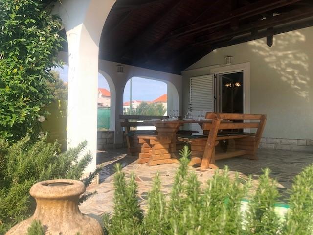 Das ganze Haus nur für Sie! Ein Paradies für Familien! Willkommen in der Villa Melosa! Komfortables Ferienhaus in Vodice mit privatem Tennisplatz. Das Haus bietet Platz für bis zu 10 Gäste. Es verfügt über 5 Schlafzimmer, 3 Badezimmer, eine Küche, ein Wohnzimmer und eine geräumige Terrasse, auf der Sie sich entspannen und Grillabende sowie einen Außen-Whirlpool für 5 Personen genießen können. Das Haus ist klimatisiert. Zum Objekt gehören 3 PKW-Stellplätze, davon zwei mit überdachtem Garagenplatz. Das gesamte Grundstück ist eingezäunt, so dass Sie sicher sein können, dass Ihre Kinder nicht auf die Straße laufen und unbeschwert im großzügigen Hof spielen können.