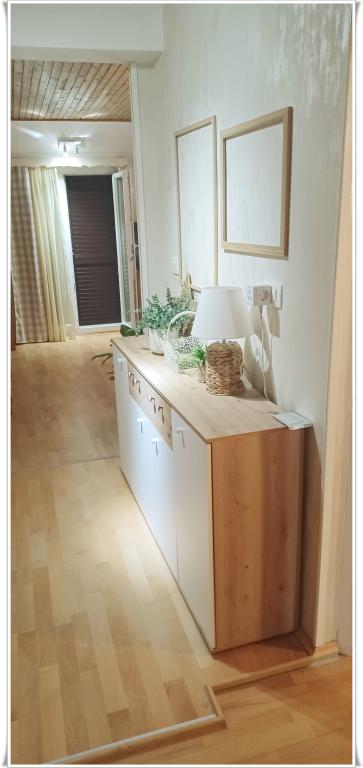 Die Wohnung befindet sich im Zentrum von Vodice und verfügt über ein Wohnzimmer mit Sofa, eine Küche, zwei Schlafzimmer mit Doppelbett (plus ein großes Bett und ein Kinderbett), zwei Badezimmer mit Dusche, zwei Warmwasserbereiter, zwei Klimaanlagen, zwei Deckenventilatoren und eine Terrasse mit Blick auf das Meer, den Yachthafen und den Park. Sie ist komplett für einen längeren Aufenthalt ausgestattet (Internet, Waschmaschine, Geschirrspüler, Küche, Handtücher, Föhn, Bügeleisen). Der westliche und östliche Strand sind jeweils ca. 350 m entfernt. https://youtu.be/boq1Agcy7bs
