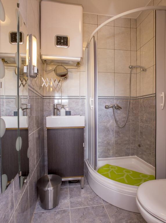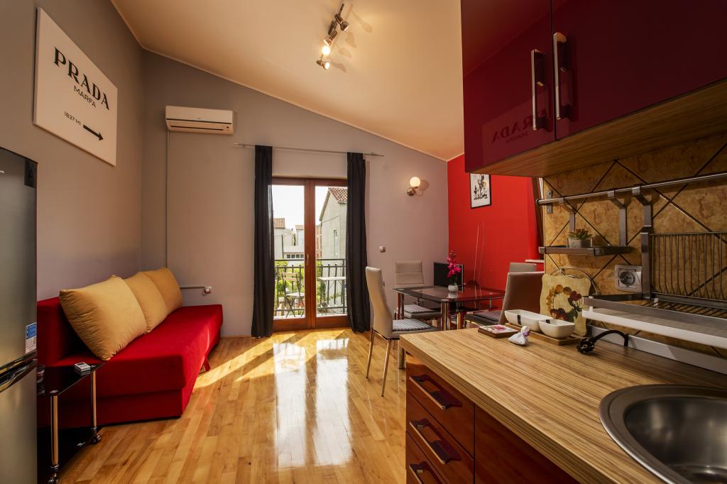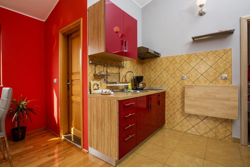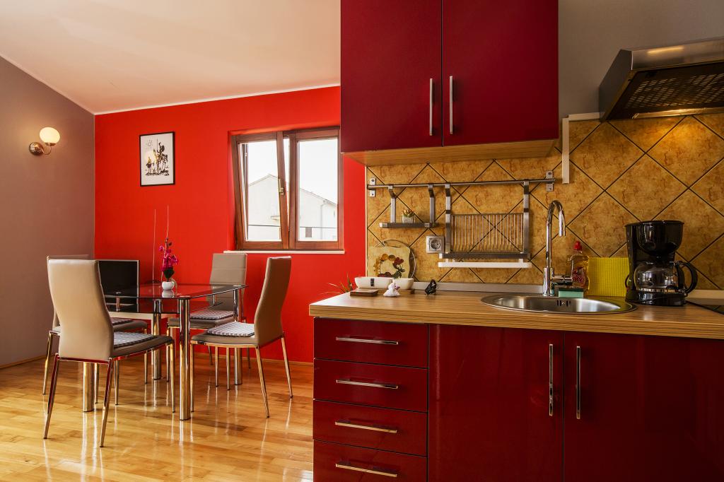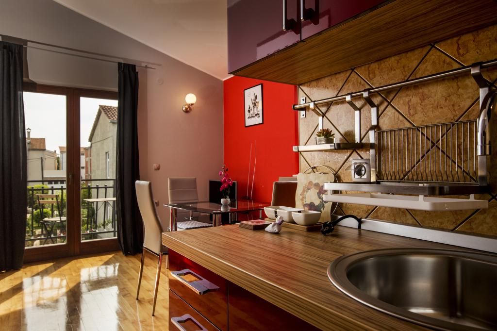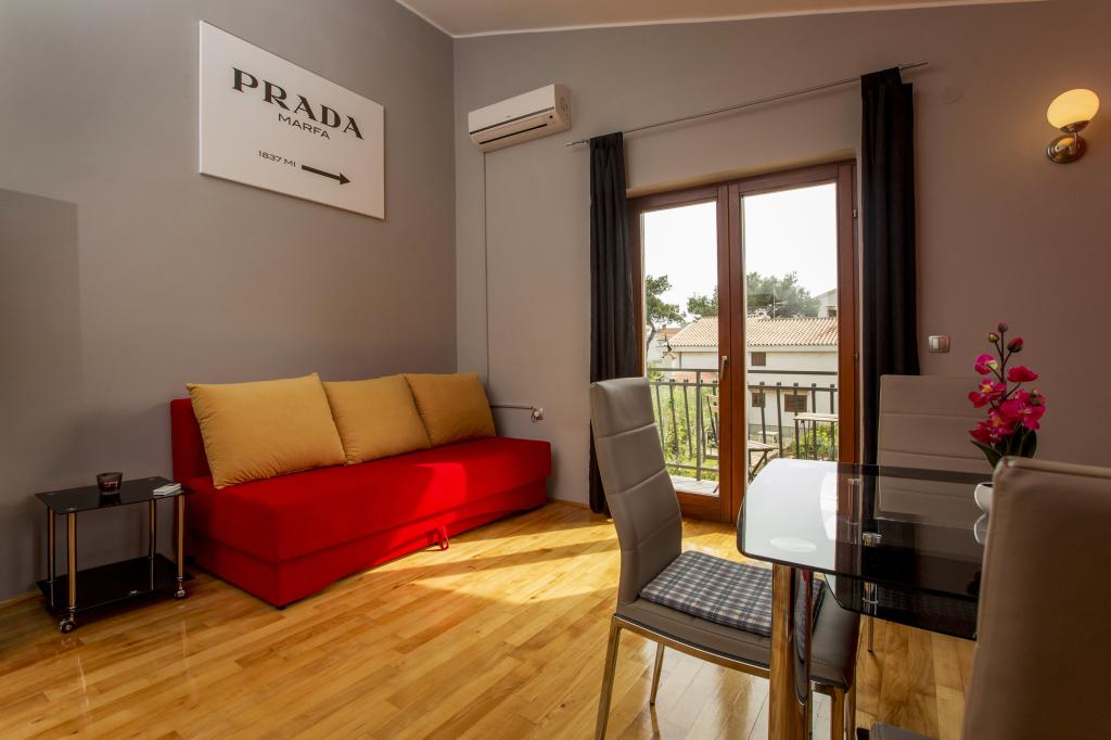Vollständig und modern ausgestattete Apartments 80 m vom Meer entfernt. Das Apartment A1 (78 m2) verfügt über zwei Schlafzimmer, eine Küche, ein Badezimmer und ein großes Wohnzimmer mit einem Essbereich und einem Zustellbett. Geeignet für bis zu 6 Personen, klimatisiert und den Gästen stehen SAT-TV, WLAN-Internet, Kaffeemaschine, Mikrowelle, Toaster und Safe zur Verfügung. Das Apartment A2 (41 m2) verfügt über ein Schlafzimmer und einen Raum mit Küche, Esstisch und Zustellbett. Es ist für bis zu 4 Personen geeignet, verfügt über eine Klimaanlage und zwei Balkone und den Gästen stehen SAT-TV, WLAN-Internet, Kaffeemaschine, Mikrowelle, Toaster und Safe zur Verfügung. Das Studio A3 ist für bis zu 2 Personen geeignet, verfügt über einen Balkon, ist klimatisiert und den Gästen stehen SAT-TV, WLAN-Internet, eine Kaffeemaschine, eine Mikrowelle, ein Toaster und ein Safe zur Verfügung. Es besteht auch die Möglichkeit, das gesamte Haus zu mieten, das Platz für bis zu 12 Personen bietet.