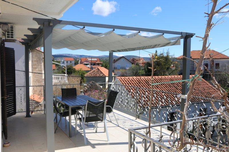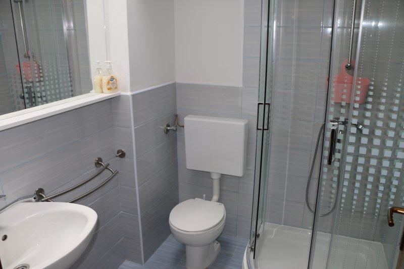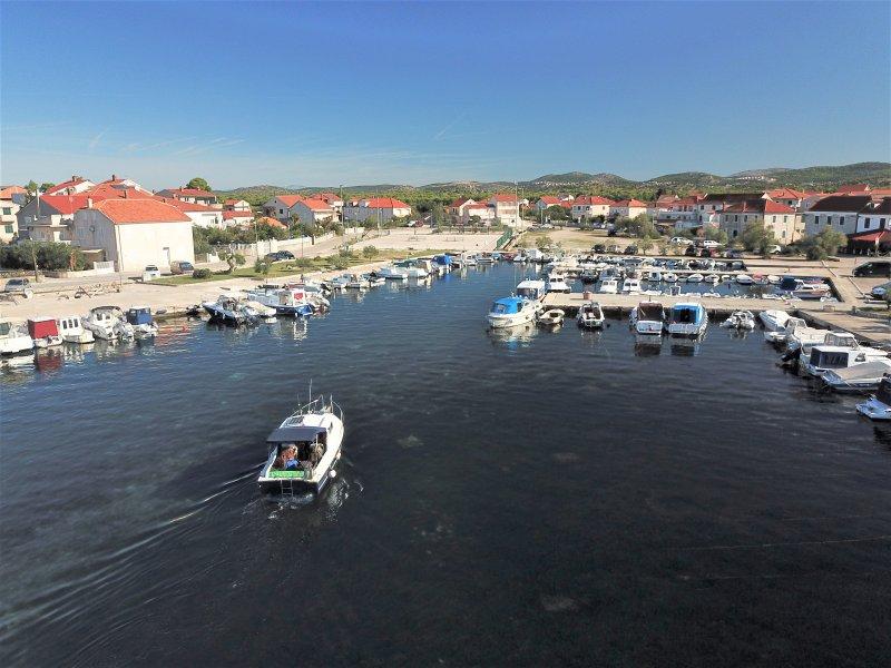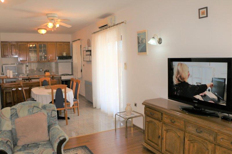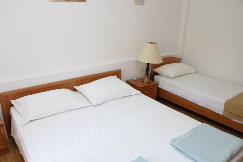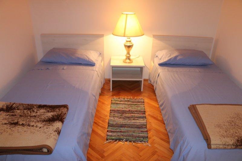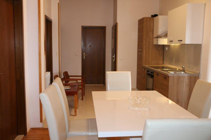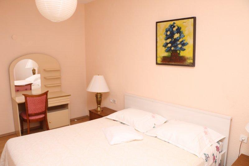 Voll ausgestattete Apartments im Zentrum von Zablac, 50 m vom Meer und 200 m vom Strand entfernt, an der Südseite des Zementstrandes im alten Kiefernwald und an der Westseite des Kieselsteinstrandes (Naturstrand). Ein zehnminütiger Spaziergang trennt die Apartments vom SOLARIS Hotel Complex und befindet sich innerhalb von 2 Kilometern von wunderschön dekorierten Stränden mit einer Vielzahl von Sport- und Erholungsmöglichkeiten sowie erstklassigen gastronomischen und Unterhaltungsangeboten bei Tag und Nacht. Aus diesen wenigen Worten lässt sich schließen, dass jede Altersgruppe ihre Bedürfnisse erfüllen und Urlaub in unseren Apartments genießen kann. Alle Apartments sind komplett mit allen notwendigen Inventaren für einen komfortablen Aufenthalt ausgestattet. Parkplatz vor dem Haus.