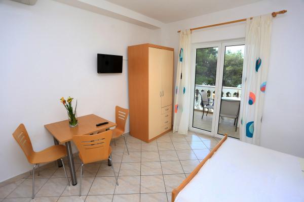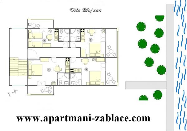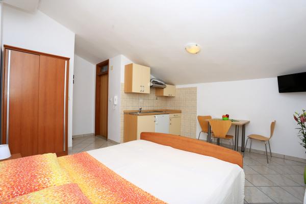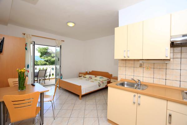 Willkommen, wir bieten Ihnen komfortable Unterkünfte zu erschwinglichen Preisen. Kleine Studio-Apartments, ideal für zwei Personen, in Zablaće, 10 Autominuten von Sibenik entfernt. Ruhiger und friedlicher Ort, ideal für einen Urlaub. Die Apartments befinden sich in der ersten Reihe zum Meer, der Strand ist 10 Meter von der Apartmenttür entfernt. Vor dem Haus befindet sich ein großer Garten, so dass alle unsere Gäste kostenlos parken können. Alle unsere Apartments sind klimatisiert, verfügen über Terrassen, TV / Satellit und Grill. Alle unsere Gäste haben kostenloses WiFi.