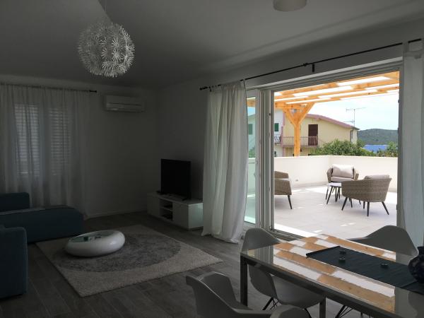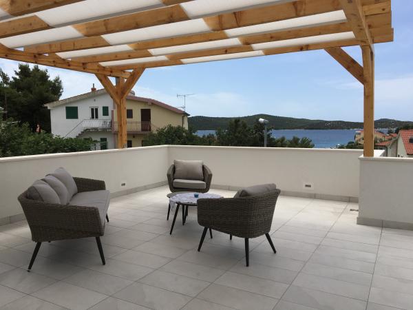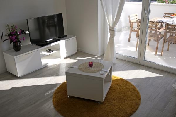 Komfortable, modern ausgestattete Apartments in Žaborić (10 km von Šibenik entfernt) in zweiter Reihe zum Meer. Der Strand ist nur wenige Gehminuten entfernt. Alle Apartments verfügen über eine Terrasse/einen Balkon, eine voll ausgestattete Küche und ein Badezimmer mit Dusche. Sat-TV und WLAN sind ebenfalls vorhanden. Der Außenpool steht Ihnen täglich von 10:00 bis 22:00 Uhr zur Verfügung. Ausreichend Parkplätze für alle Gäste sind vorhanden.