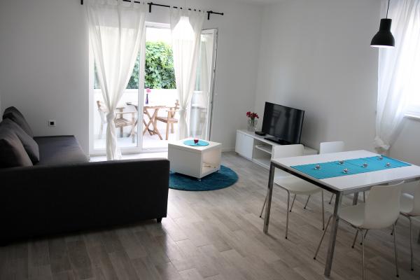 Kurtaxe ist im Preis inbegriffen.Im Unterkunftspreis sind kostenlose Parkplätze im Gebäude inbegriffen. Die Nutzung des Außenpools ist für alle Apartmentnutzer täglich von 10:00 bis 22:00 Uhr kostenlos. Es besteht die Möglichkeit, ein Boot zu mieten und Ausflüge zu organisieren.