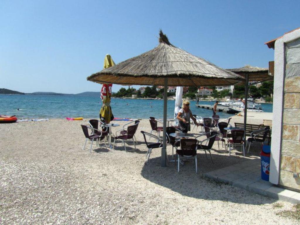 Kurtaxe ist im Preis inbegriffen.Die Unterkunft liegt in idyllischer Lage direkt am Meer, umgeben von viel Grün. Während Ihres Aufenthalts steht Ihnen ein Bootsliegeplatz zur Verfügung. Das Meer ist klar und sauber, und wer es etwas aktiver mag, kann Tischtennis, Trampolinspringen oder Tretbootfahren. In der Nähe befinden sich ein Restaurant mit Terrasse, auf der Sie regionale Gerichte und Weine genießen können, eine Pizzeria und eine Strandbar direkt am Strand. Der Strand ist mit Duschen und Sonnenschirmen ausgestattet.