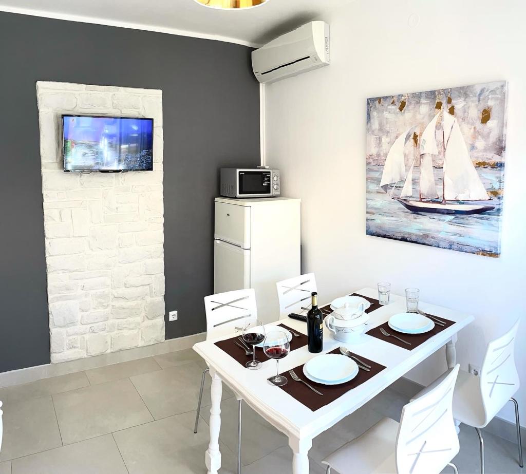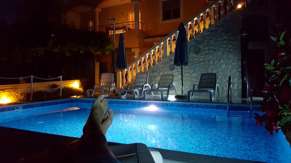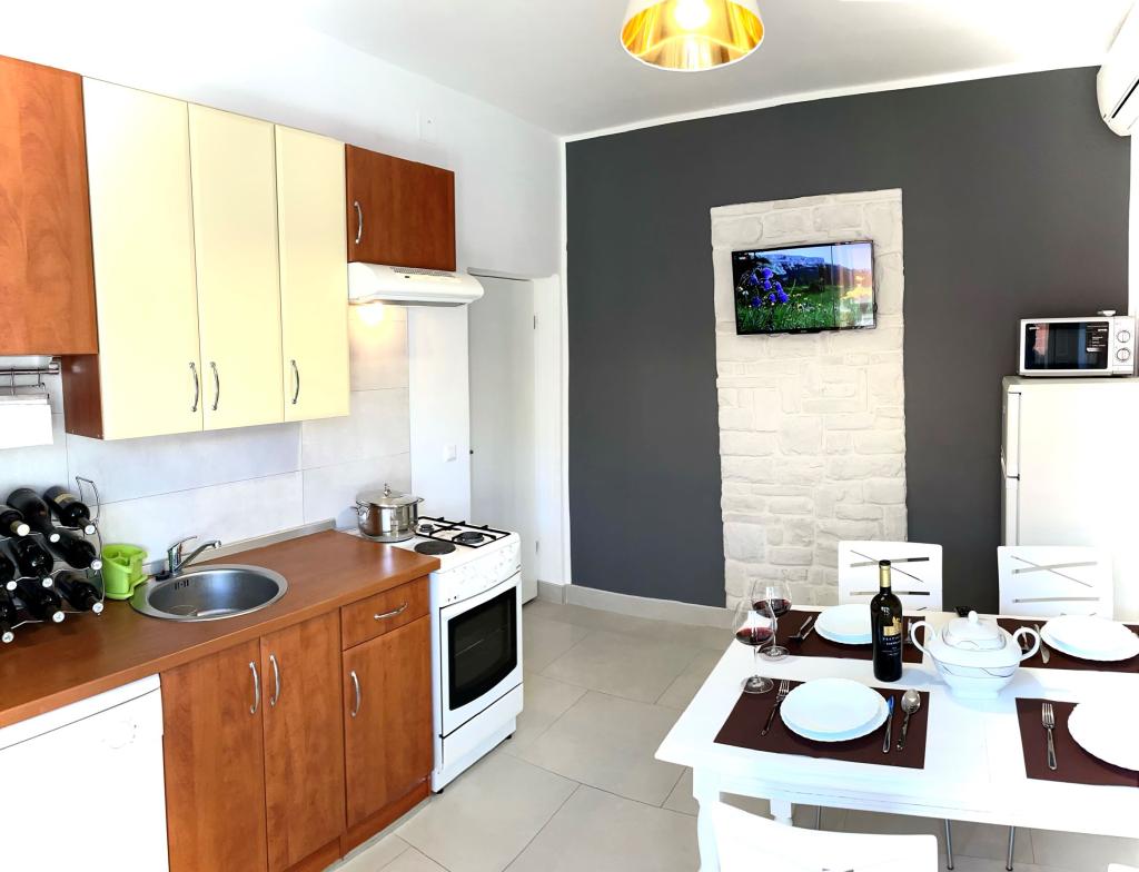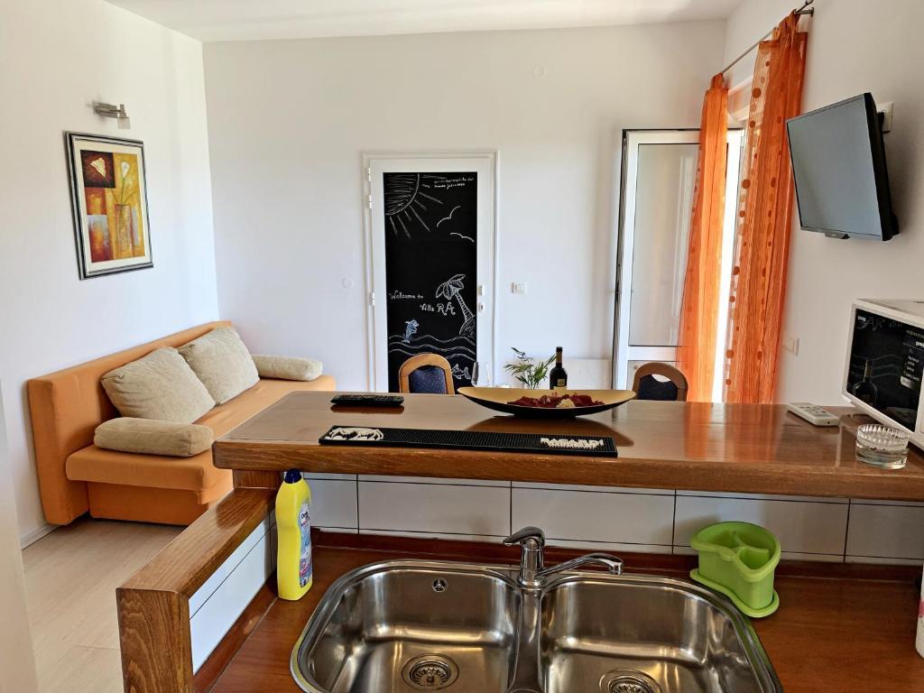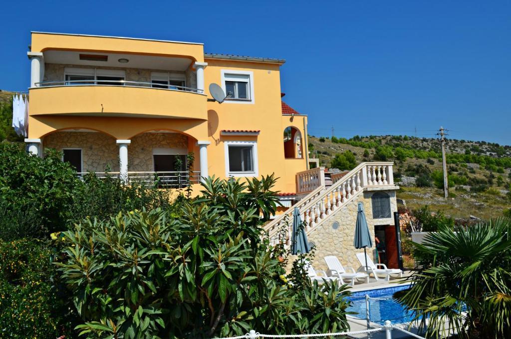 Villa RA enthält 4 komplett und modern ausgestattete Apartments mit Gemeinschaftspool, Grill, kostenlosen Privatparkplätzen und Garten. Die Apartments befinden sich in einer ruhigen, intimen Gegend, 250 m vom Kiesstrand von Jasenovo entfernt, geeignet für Familien mit kleinen Kindern, 200 m entfernt befindet sich ein Restaurant mit einem reichen Angebot an Fisch- und Fleischspezialitäten und einer Loungebar, am Strand sind auch zwei nette Restaurants / Cafés mit lustigen Spielen. Die Villa Ra ist 10 km von der mittelalterlichen Perle - der Stadt Šibenik, 20 km vom wunderschönen Nationalpark Krka, 20 km von Primošten und 80 km von den Städten Split und Zadar entfernt.
