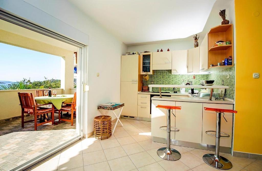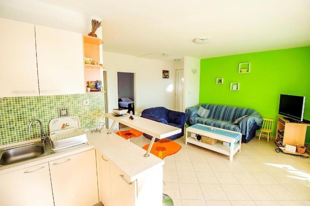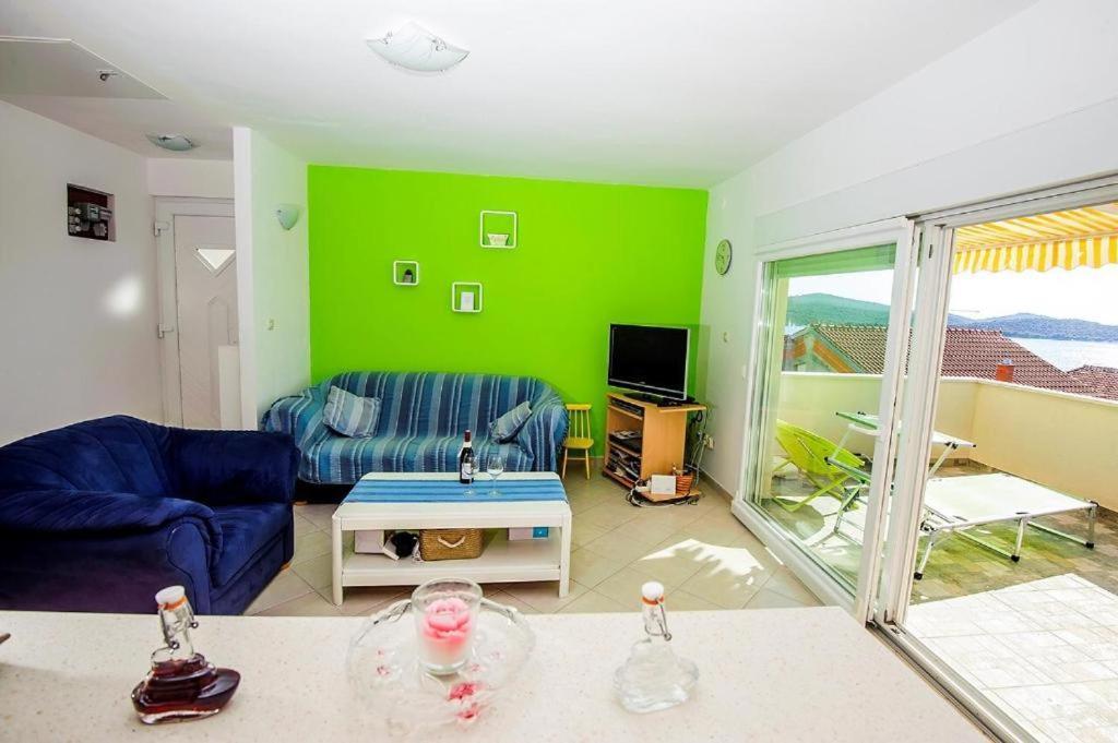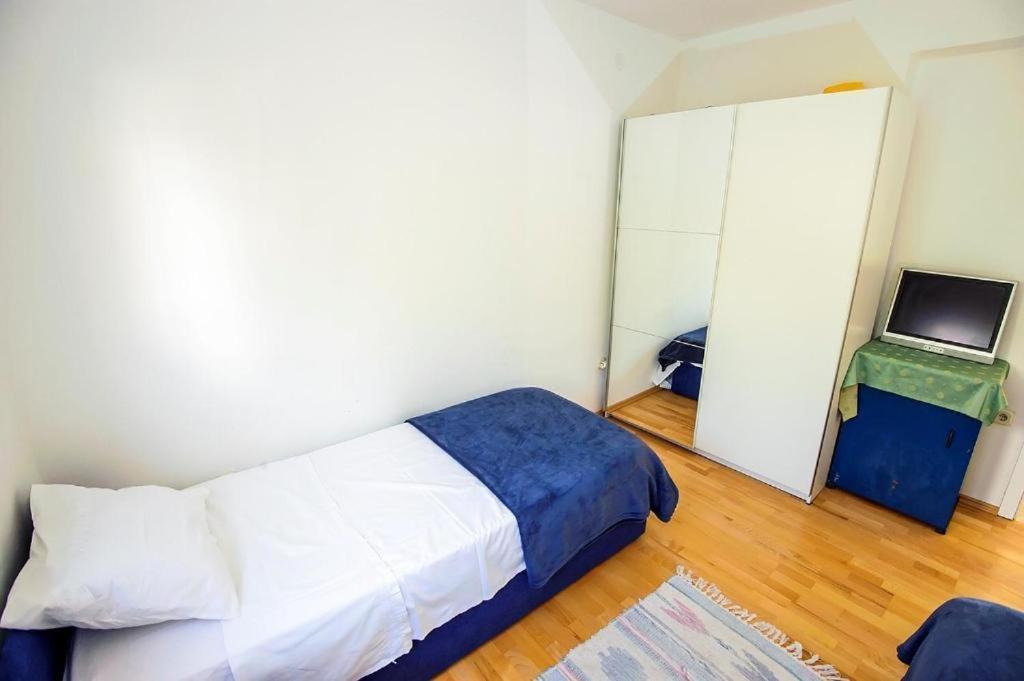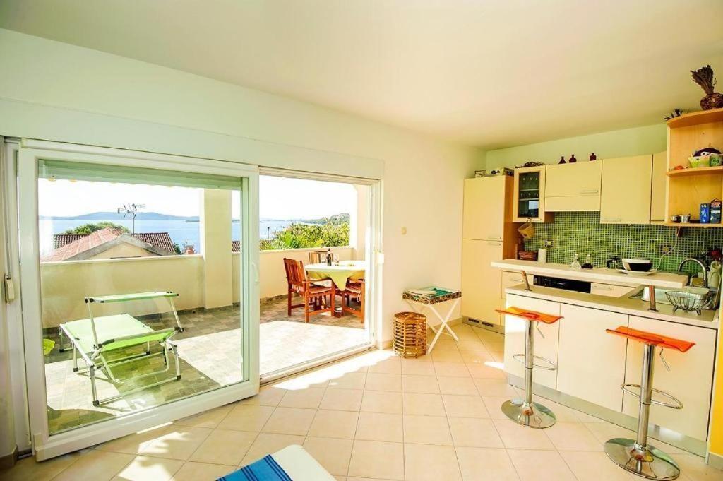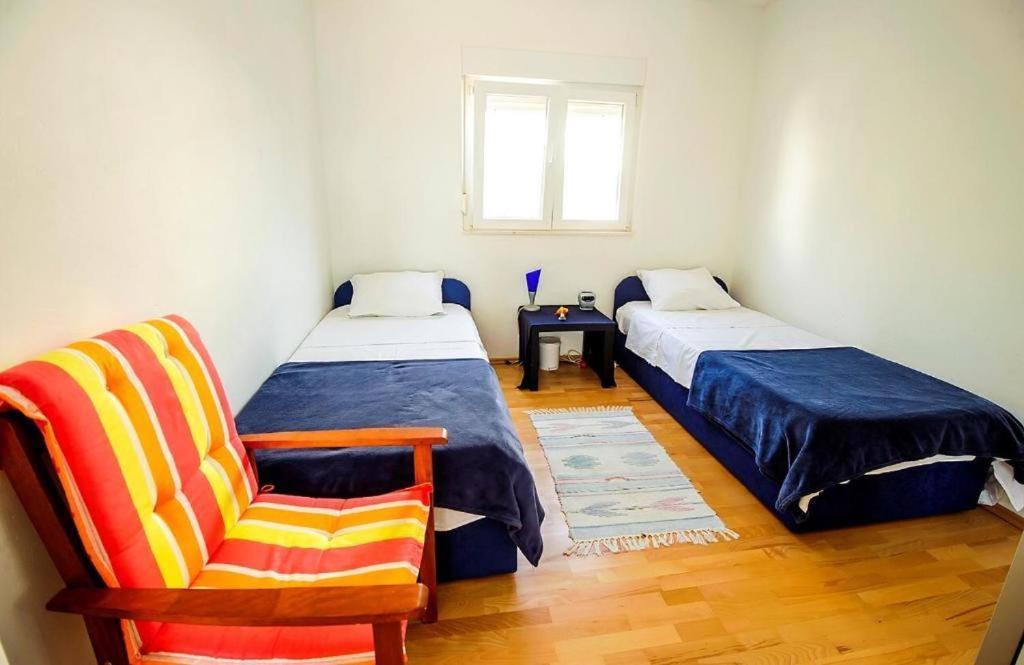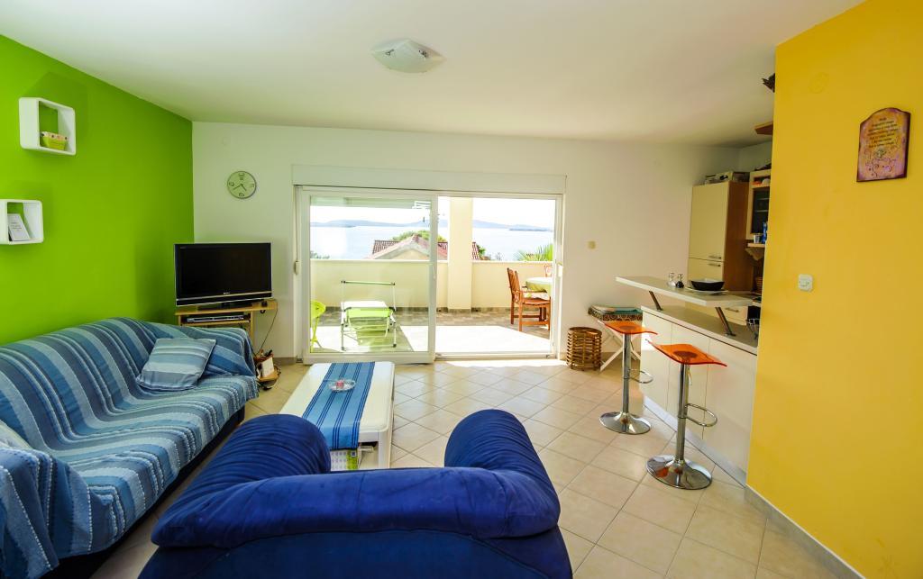 Die Wohnung befindet sich im ersten Stock des Hauses und da das Haus auf einem Hügel liegt, bietet es den Nutzern einen herrlichen Blick auf das Meer und die Bucht. Von der Terrasse aus können Sie auch die Insel Krapanj sehen, die am tiefsten gelegene Insel Europas. Das Haus liegt in einer ruhigen Straße, wenn Sie also einen echten Urlaub verbringen möchten, ist die Unterkunft ideal. Wenn Sie dennoch Restaurants, Loungebars usw. besuchen möchten, bietet Ihnen Žaborić eine Handvoll Restaurants und Unterhaltungsmöglichkeiten direkt am Meer. Das Zentrum des Dorfes erreichen Sie zu Fuß (20 Minuten) oder mit dem Auto (3 Minuten). Das große Einkaufszentrum Dalmara liegt an der Straße nach Šibenik, das 10 km entfernt ist. Žaborić ist ideal, wenn Sie die umliegenden Städte wie Primošten, Vodice, Split oder Zadar besuchen möchten, wir empfehlen aber auch einen Besuch des nur 20 km entfernten Nationalparks Krka. Die Gastgeber bieten Ihnen viel mehr Details und helfen Ihnen bei allem.