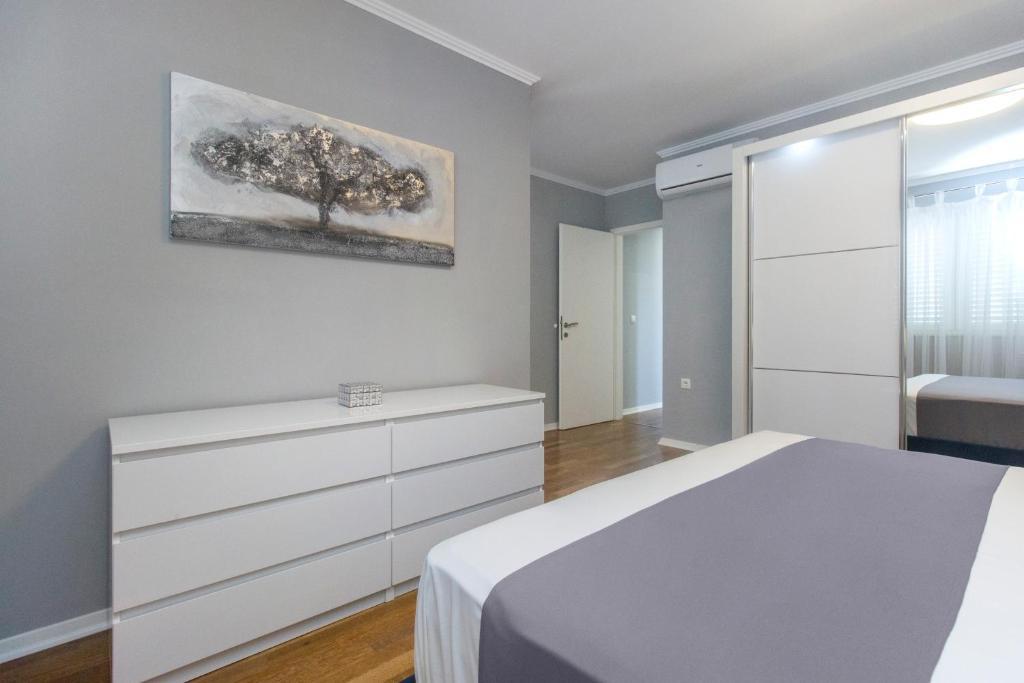 Neue Penthouse-Wohnung, zum ersten Mal zu vermieten. Die Fläche der Wohnung beträgt 95 m2, die letzte Etage des Gebäudes. Die Wohnung verfügt über: 2 große Schlafzimmer, 2 Badezimmer, voll ausgestattete Küche, Backofen, Waschmaschine, Geschirrspüler, 3 Klimaanlagen, Internet, Sat-TV, 160 cm Smart-TV. Die maximale Anzahl der Gäste im Apartment beträgt 5. Das Apartment liegt nur wenige Gehminuten vom Kiesstrand und dem Autocamp Jasenovo entfernt. Gesicherter Privatparkplatz. Willkommen!