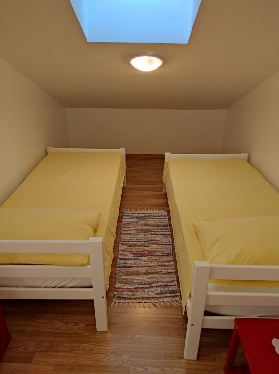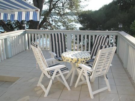 Die Villa Dradar liegt in erster Reihe am Meer. Apartment A10 (A6+A4): Wir bieten Ihnen unser beliebtes Apartment A10 auf zwei Etagen an. Die Aufteilung ist wie folgt: Im ersten Stock befinden sich eine Küche, ein Wohn-/Esszimmer mit Schlafcouch, ein Badezimmer, drei Schlafzimmer mit insgesamt sechs Betten, ein Kleiderschrank und ein Balkon mit Meerblick. Die beiden Etagen sind über eine Innentreppe verbunden. Im zweiten Stock befinden sich eine Küche, ein Wohn-/Esszimmer mit Schlafcouch, ein Badezimmer, ein Kleiderschrank, zwei Schlafzimmer mit insgesamt vier Betten und eine Terrasse mit Meerblick. Zur Ausstattung gehören außerdem eine Garage, zwei weitere Stellplätze, ein Grill, ein Garten mit Gartenmöbeln und Markise, eine Außendusche, Liegestühle und Sonnenschirme sowie ein Strandabschnitt direkt vor dem Haus für Erwachsene und Kinder. Ein Bootsanlegeplatz ist ebenfalls vorhanden. Die gesamte Unterkunft ist neu möbliert und entspricht der Kategorie 4****. Der Preis beträgt 40 € pro Person und Nacht. Bei Ankunft ist eine Vorauszahlung in Höhe einer Tagesmiete für die Schadensversicherung fällig. Der Betrag wird beim Auschecken zurückerstattet.
