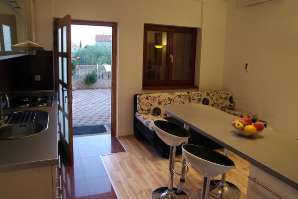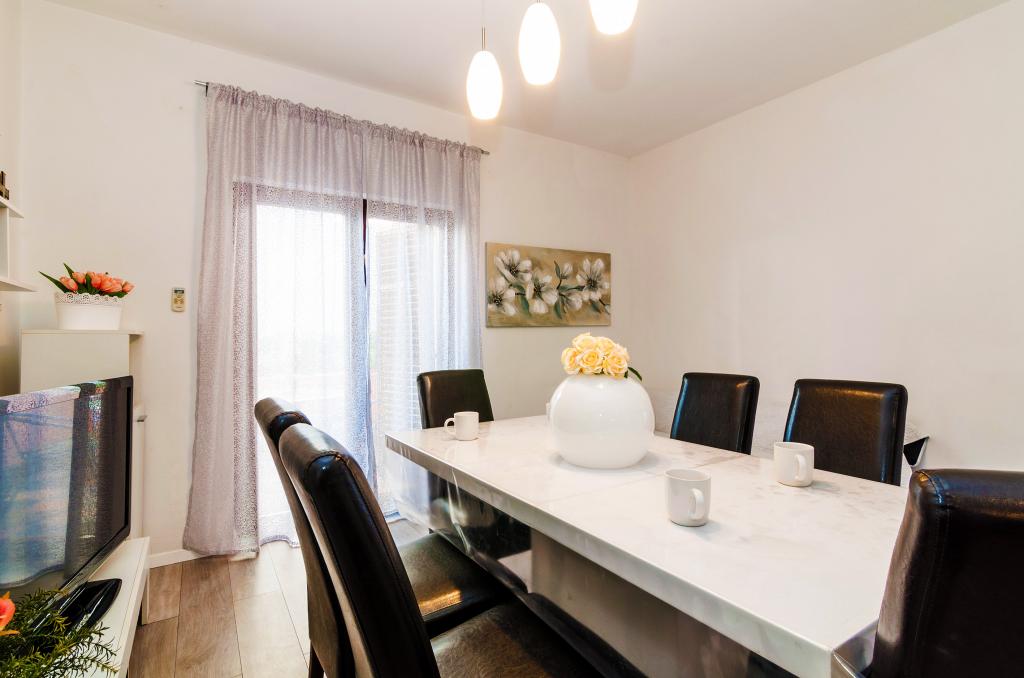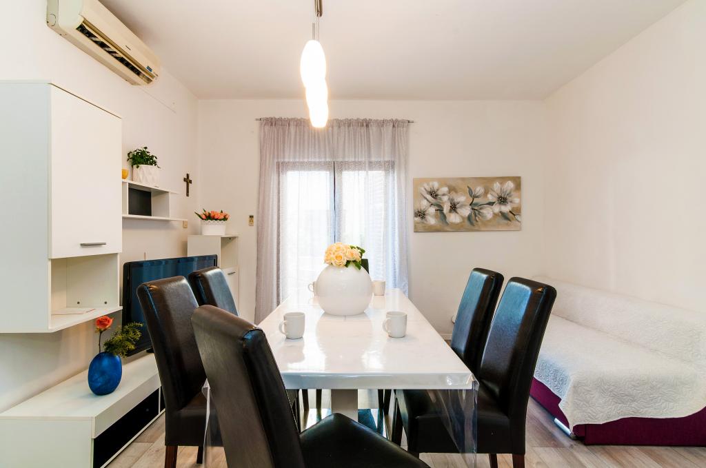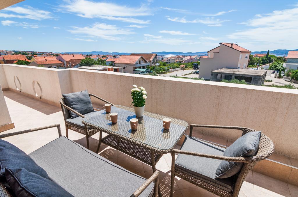 Mehrere Wohnungen zur Miete in Zadar, innerhalb des Apartmenthauses Apartmani Anđelo. Die Apartments sind komplett und modern ausgestattet, von Küche, Bad, Balkon ... Jedes Apartment verfügt über einen Parkplatz und kann eine große Terrasse mit Grill und Backofen nutzen, die sich ideal für geselliges Beisammensein eignet. Sie sind ca. 5-6 Minuten mit dem Auto vom Strand entfernt und ebenso weit vom Stadtzentrum entfernt. Sie sind ideal für junge Leute, Paare und Paare mit Kindern, ohne Lärm in der Stadt. In der Nähe befinden sich große Einkaufszentren, eine Sporthalle mit Tennisplätzen, Fußball und andere Sportanlagen.