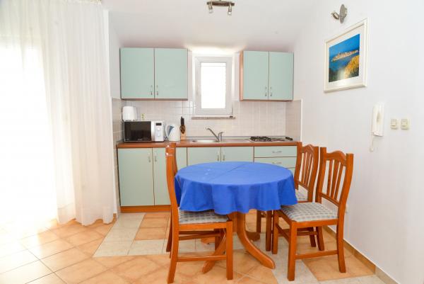Die Appartments Blue sind komplett ausgestattet, befinden sich in einer stillen Gegend , nur 70m vom Strand entfernt und bieten Ihnen einen unvergesslichen Urlaub zum Geniessen und Entspannen. Der hervorragende Blick, direkt vom Balkon auf's Meer und die Inseln ist etwas was Sie sicher lange in Errinerung behalten werden. Die Appartments Blue befinden sich in einem Haus und umfassen insgesamt 5 Appartments. Einer von den Appartments ist auch für Behinderte zugänglich. Im Hausgarten befindet sich ein Grill, welcher Ihnen jederzeit zu Verfügung steht. Parkplatz ist vorhanden. Der Strand vor dem Appartment besteht aus Kiessteinen und ist für Kinder aller Altersgruppen geeignet, bis die Erwachsenen Ihre Zeit auf kostenlosen Liegestühlen und unter Sonnenschirmen geniessen können. Der Internet-Anschluss in den Appartments so auch am Strand ist vorhanden und kostenlos.
