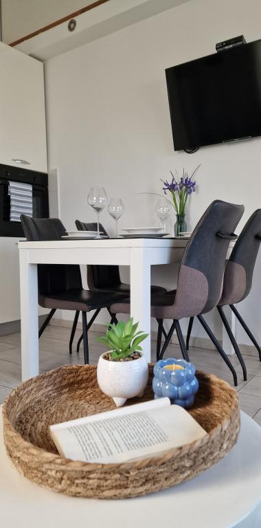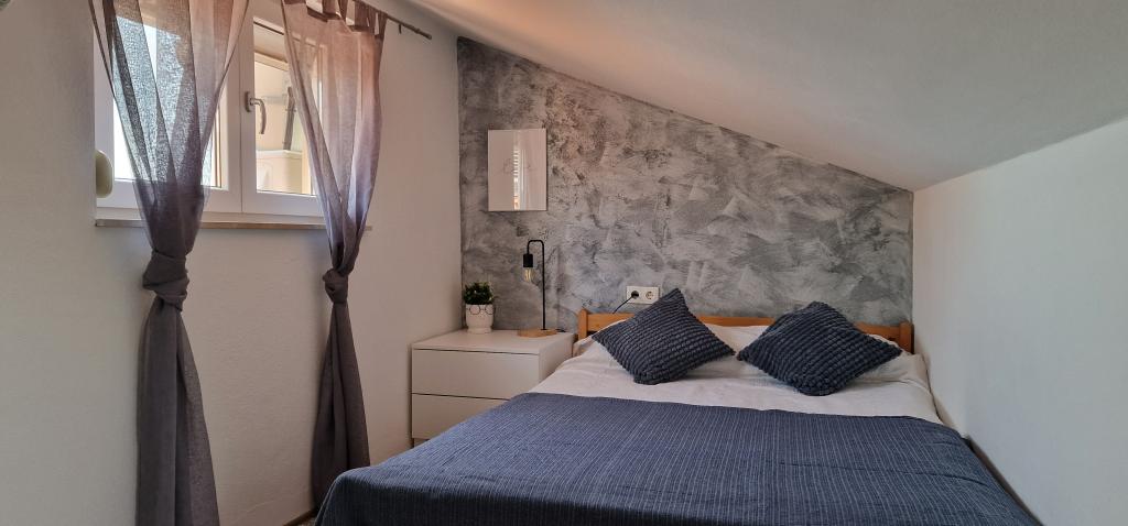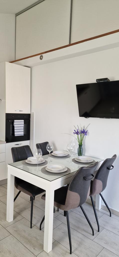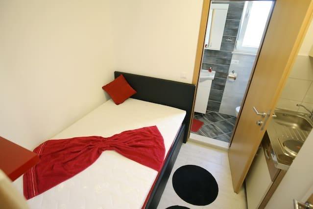 Apartments Iva ist in leicht erhöhter Lage, in einem modernen Villa zweiten 5 km von der Altstadt entfernt. Das Angebot, zusätzlich WLAN und ein privaten Parkplatz zu befreien, in zwei weiteren Wohnungen finden Sie stilvolle Zimmer finden, mit Klimaanlage in jedem von ihnen (3 Klima pro Person), Wohnzimmer / Küche mit Stil und ein LCD-TV, geräumigem Terrasse, wo Sie die Aussicht, ein modernes Bad mit Dusche entspannen und genießen etc. Größere Wohnungen bestehen aus zwei Schlafzimmern, ein Doppelbett in einer und Betten für 1 Person, die für 2 Personen im zweiten Schlafzimmer in ein Bett erstreckt. Sofa im Wohnzimmer, falls erforderlich, in ein Bett für zwei Personen umgewandelt werden. Die Küche ist mit allem, was man für eine angenehme Ruhe ausgestattet: Kühlschrank, Backofen, Geschirrspüler (1 Suite) ... Studio ist ein kleiner Raum von 25m2, die zwei Etagen erstreckt, und ist geeignet, Unterkunft für 2 Personen. Es besteht aus 1 Schlafzimmer mit Doppelbett im Obergeschoss und Küche und Bad auf dem Boden. Alle Wohnungen sind neu renoviert.