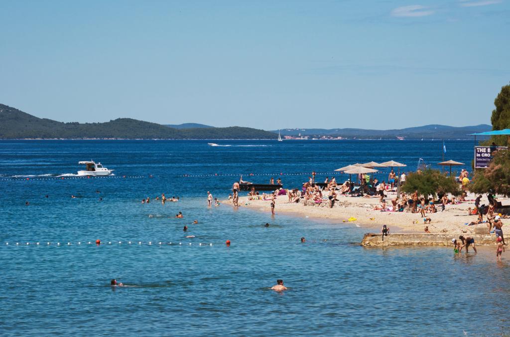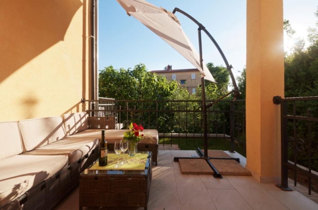Modernes und stilvoll eingerichtetes Apartment, ideal für ein Paar in einer ruhigen Gegend von Zadar, in der zweiten Reihe zum kieseligen Strand Porthos und 200 m vom Strand Kolovare entfernt. Es ist 10 Gehminuten vom Stadtzentrum entfernt. Die Wohnung ist komplett ausgestattet und verfügt über eine schöne Terrasse, umgeben von viel Grün.