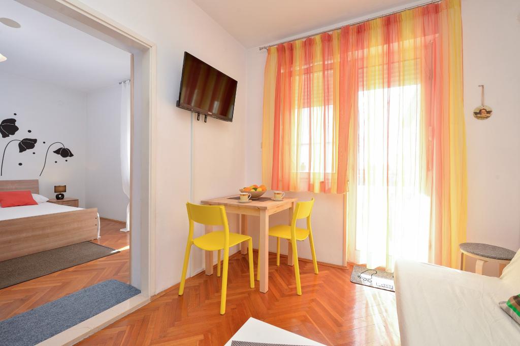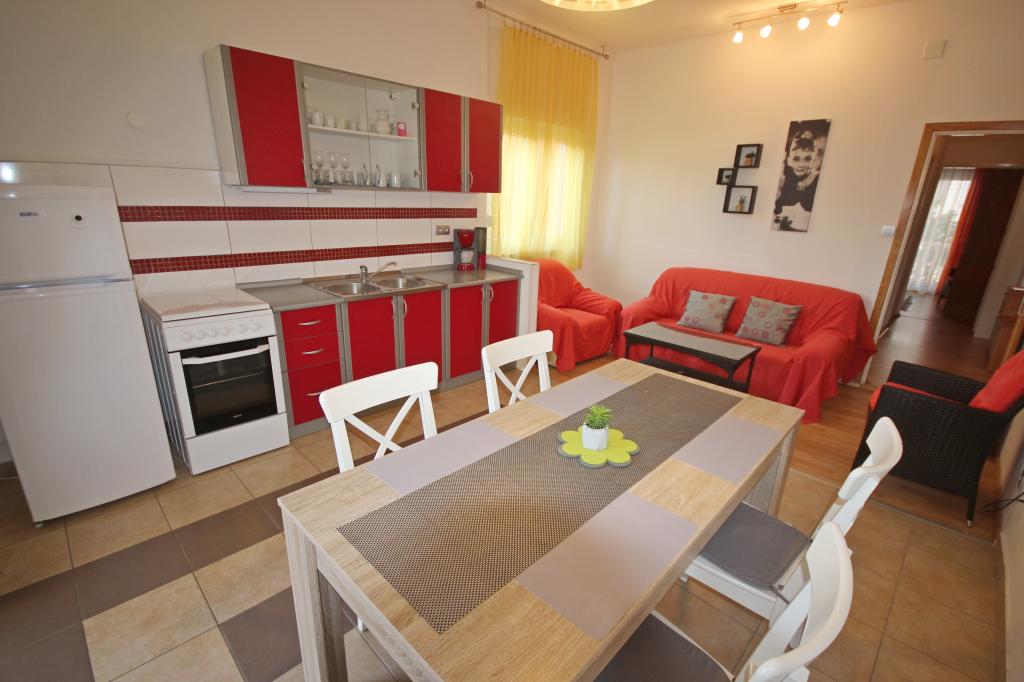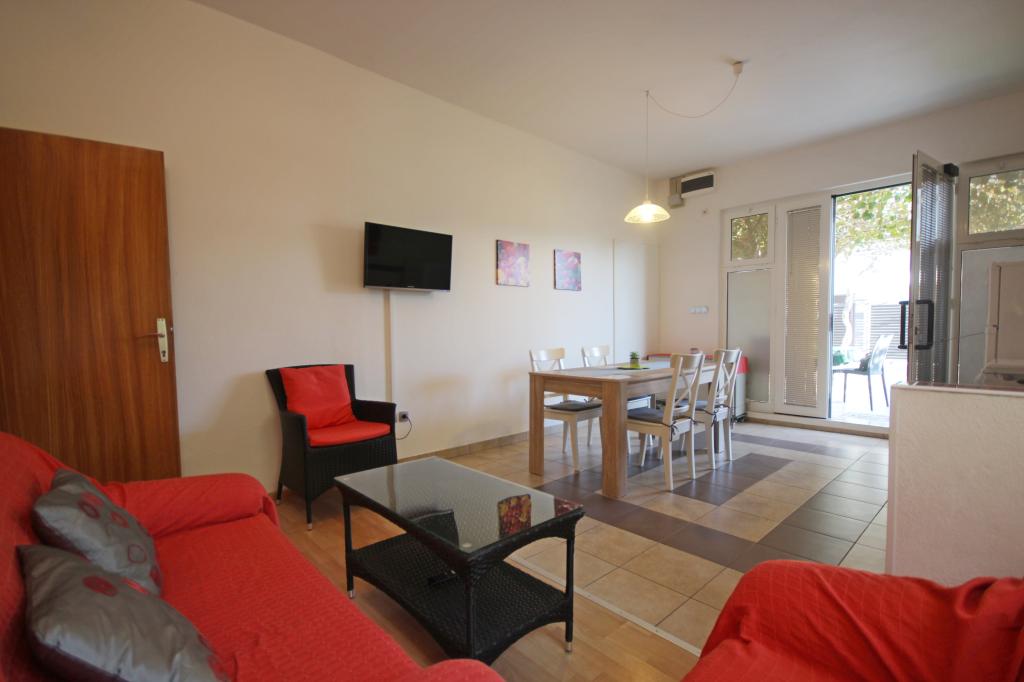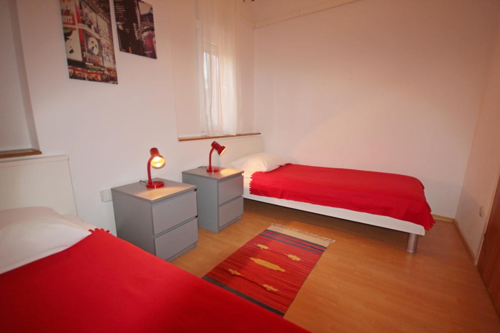 Wohnung in einem ruhigen und touristischen Teil von Zadar, genannt Borik. Die Anlage befindet sich 8 Minuten zum Strand, Supermarkt und Bushaltestelle. Die Wohnung ist komplett ausgestattet mit allem, was Sie brauchen. Es verfügt über zwei Schlafzimmer, Badezimmer, großes Wohnzimmer mit Küche und Essbereich, einen Balkon an der Rückseite und eine Terrasse an der Vorderseite. Die Wohnung verfügt über Klimaanlage, Sat-TV, WLAN ist verfügbar. Parken ist im Hof. Die Gäste können den Grill benutzen, der sich auch im Hof der Anlage befindet.