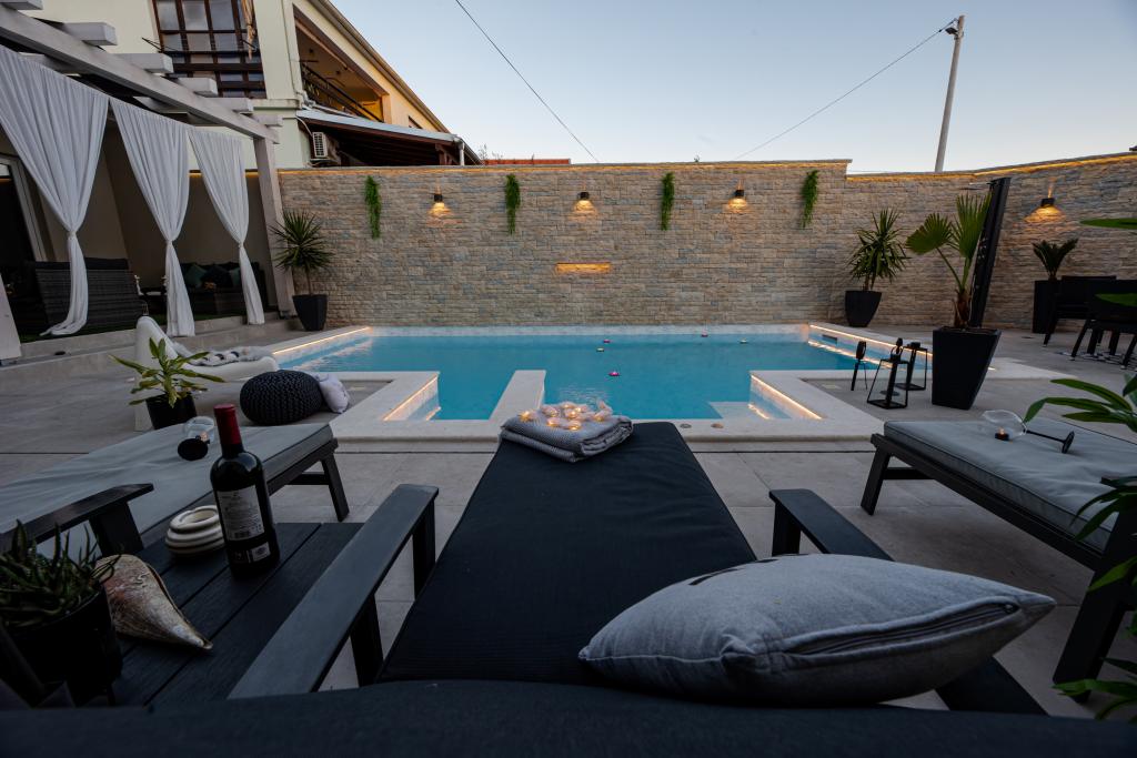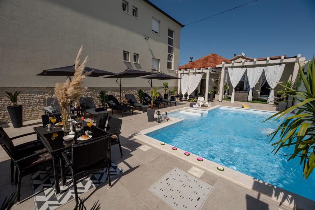Neu moderne Apartments mit allem ausgestattet (Bettwäsche, Handtücher, Smart-TV, WLAN, Klimaanlage, Geschirr, Erste Hilfe, buchstäblich an Nadel und Faden! Masken und Desinfektion am Eingang!) Als Teil der Apartmentterrasse (welche wird mit anderen wohnungen kombiniert, die für eine große gruppe verbunden werden können) separater eingang, 6 parkplätze. Auf der anderen Straßenseite 2 Bäckereien, Bakmaz Lebensmittelgeschäft, nur 3 Minuten zu Fuß zum Tommy Discounter, 5 Minuten zu Fuß zum Kaufland, Interspar, 5 Minuten zum Višnjik Sportzentrum (alle Arten von Sportplätzen, Joggingstrecke, Kinderspielzimmer im Freien), in der Friseurviertel, Schönheitssalon, Massagesalon, Taxi-Pizza, Einkaufszentrum Stadtgalerie .... 10-15 min zu Fuß oder 5 min mit dem Auto zum nächsten Strand Kolovare, Schwimmbad .... 15 min zu Fuß oder 5 min vorbei Auto in die Innenstadt (Halbinsel) ... 15 Minuten mit dem Auto alle großen Strände, Sandstrand - Kitesurfen, Ljubac, Zaton, Pinija, Petrcane, Sukosan, Nin .... Wir organisieren auch den Transport zum und vom Flughafen und Schnellbootfahrten zu den Inseln, Tauchen oder einfach nur Delfine sehen ... Von diesem Jahr beheizter Pool, Grill !!