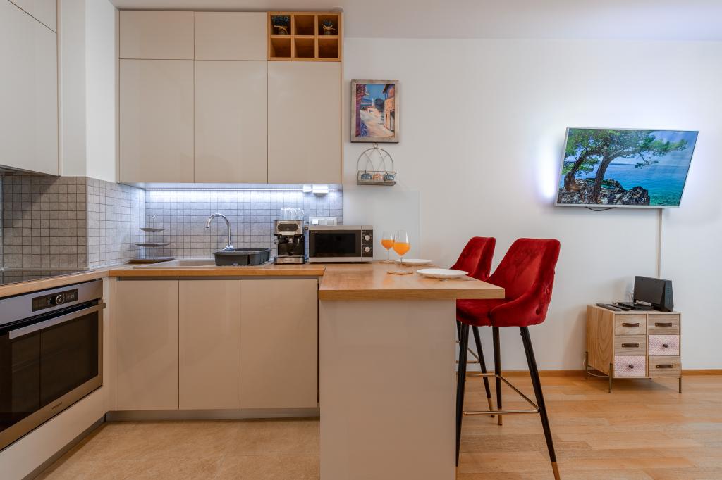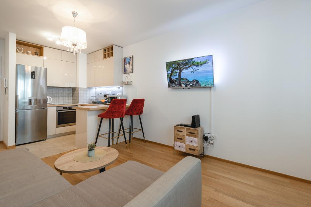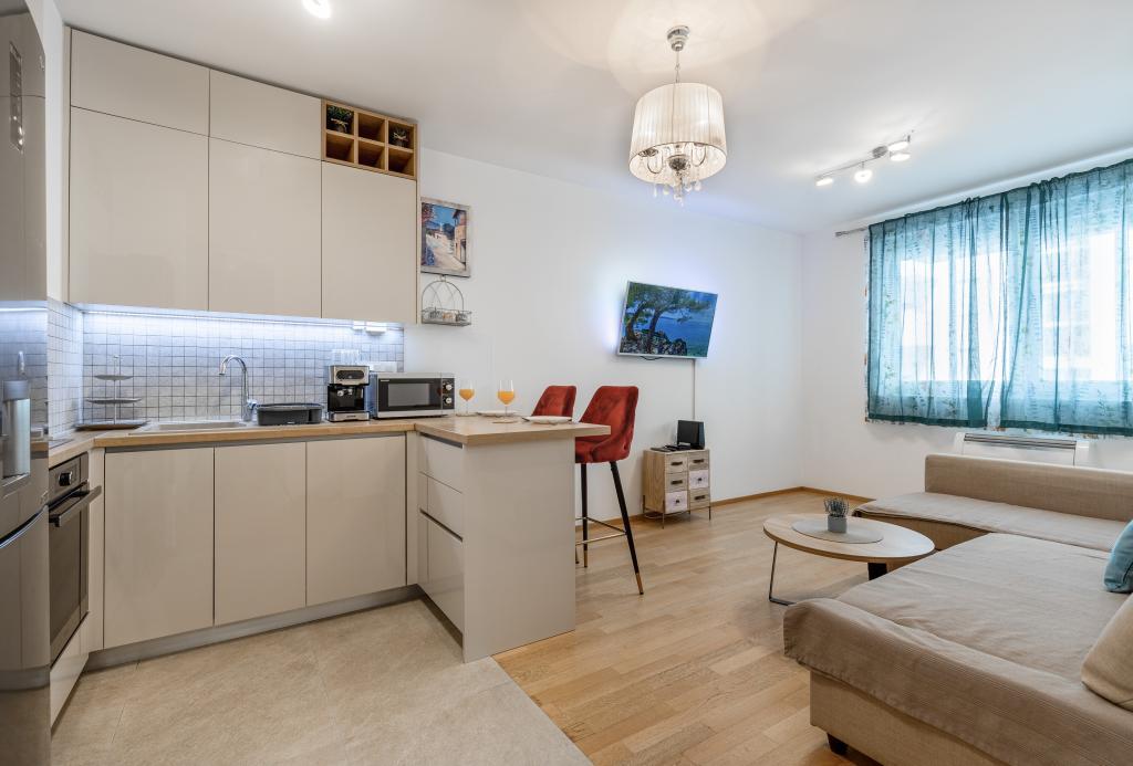 Genießen Sie ein komfortables und modern eingerichtetes Apartment für zwei Personen – perfekt für einen entspannten Aufenthalt im schönen Zadar. Das Apartment ist ideal für Paare, Geschäftsreisende oder aktive Urlauber, die die Nähe zum Stadtzentrum und zu Sportanlagen schätzen. Die Lage ist hervorragend: Das Stadtzentrum ist nur 15 Gehminuten entfernt, und das Sportzentrum Višnjik erreichen Sie nach nur 200 Metern. Auch die großen Einkaufszentren Lidl und Kaufland sind fußläufig erreichbar. Ein besonderer Vorteil des Apartments ist der private Parkplatz direkt neben dem Gebäude, nur wenige Meter vom Fenster entfernt – eine echte Rarität in einem so zentralen Stadtteil. Die Lage ermöglicht einen ruhigen Aufenthalt abseits des Stadttrubels und bietet dennoch die Möglichkeit, das Stadtzentrum bequem zu Fuß zu erreichen. Beginnen Sie den Morgen mit einem Spaziergang durch die Altstadt, verbringen Sie den Tag am Meer oder auf den Sportplätzen von Višnjik und entspannen Sie sich abends in der Ruhe und dem Komfort Ihres Apartments.