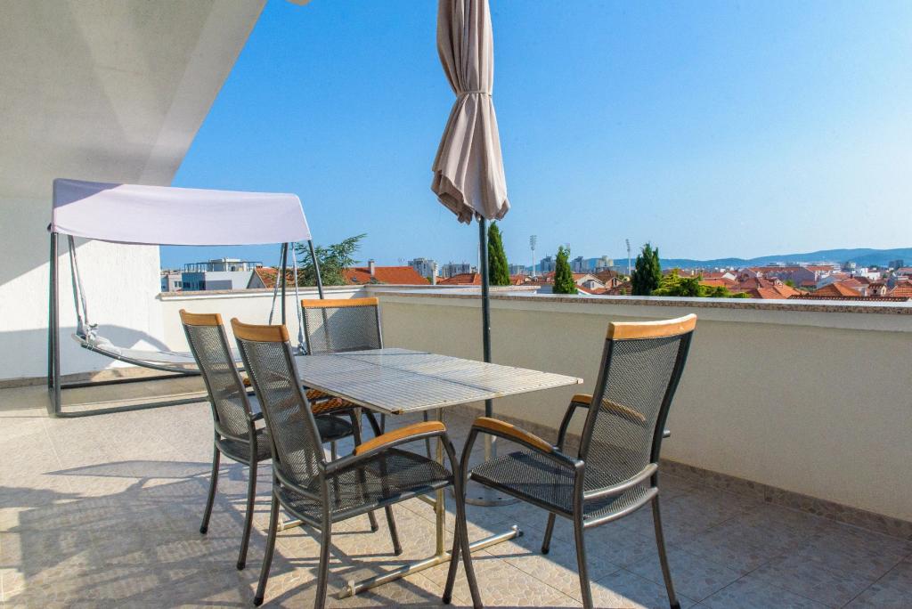 Wir bieten eine schöne 3-Zimmer-Wohnung mit 2 Schlafzimmern, einem modernen WC mit Fenster und Waschmaschine, einer großen offenen Küche mit Anschluss an einen Receiver und Klimaanlage. Dahinter erwartet Sie eine große Terrasse mit herrlichem Blick auf die Stadt und das Meer, auf der Sie genießen und entspannen können. Die Anlage liegt 30 Gehminuten vom schönen Stadtstrand und dem historischen Stadtzentrum entfernt. 10 Minuten mit dem Auto oder Taxi. Parken direkt vor dem Gebäude.