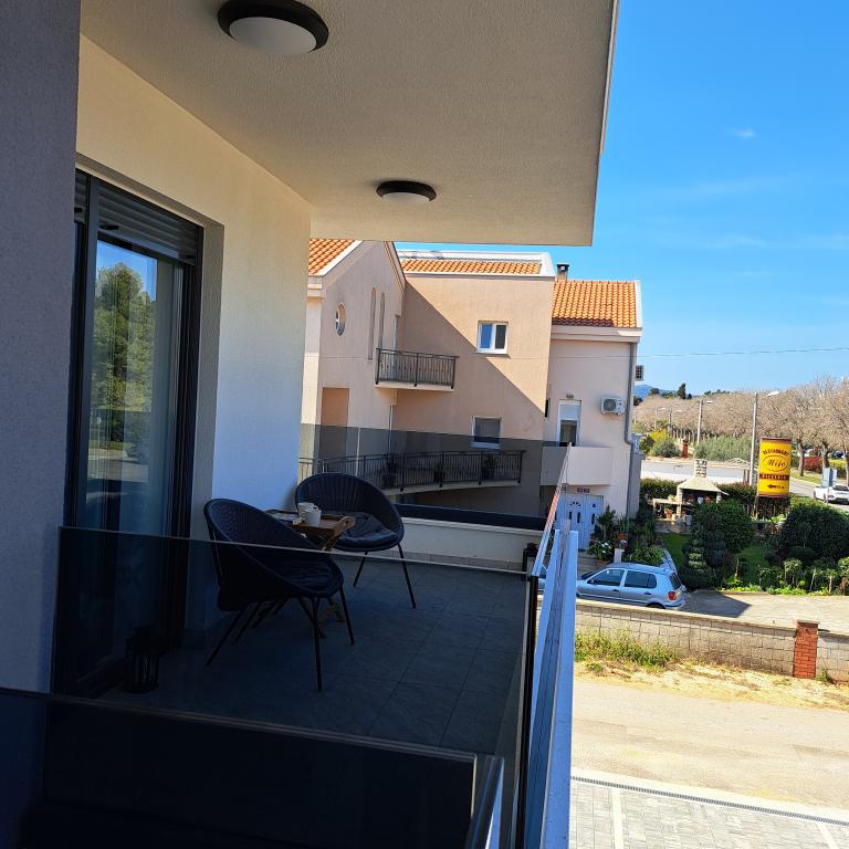 Das Apartment Noa befindet sich in bester Lage in Borik, direkt hinter dem Hotel Falkensteiner. Das Zentrum von Zadar ist 3 km oder 10 Autominuten entfernt. In unmittelbarer Nähe befinden sich eine Bushaltestelle, ein Restaurant, ein Café und eine Apotheke. Alle Strände sind bequem zu Fuß erreichbar: Der Strand von Borik ist 5 Minuten, der Strand von Uskok 10 Minuten und der Strand von Puntamika 12 Minuten entfernt. Auch der Yachthafen von Borik ist nur 6 Gehminuten entfernt. Das Apartment liegt im ersten Stock und verfügt über ein Schlafzimmer mit einem Doppelbett (160 x 200 cm), ein Badezimmer, eine voll ausgestattete Küche und ein Wohnzimmer mit einer Eckcouch, die zu einem weiteren Bett ausziehbar ist. Jedes Zimmer ist mit einem Flachbildfernseher, WLAN und einer Klimaanlage ausgestattet. Vom umlaufenden Balkon genießen Sie einen herrlichen Meerblick. Parkplätze stehen direkt am Gebäude zur Verfügung. Rauchen ist im Gebäude nicht gestattet, auf dem Balkon jedoch erlaubt.