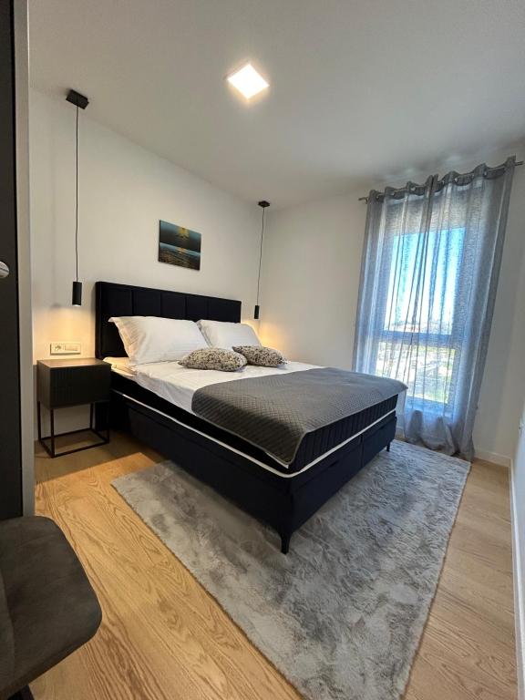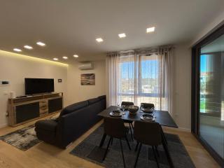 Neu!!! Die Wohnung besteht aus: zwei Schlafzimmern mit großen Betten, einem geräumigen Wohnzimmer mit Esszimmer und Küche, Badezimmer und Zugang zur Loggia... Modern eingerichtete Wohnung in einem ruhigen Teil der Stadt, gesicherter Parkplatz, in der Nähe des Strandes, von Geschäften, Restaurants, Promenade, Tennisplätzen, Café-Bar, Kinderspielplatz, in der Nähe des Yachthafens – Möglichkeit, ein Boot zu mieten, ...