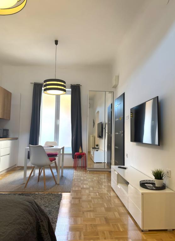Apartments im Herzen von Zagreb – Frankopanska 11 Suchen Sie die perfekte Unterkunft im Zentrum von Zagreb? In prestigeträchtiger Lage in der Frankopanska-Straße bieten wir drei modern eingerichtete Apartments, die sich ideal für einen kurzen oder langen Aufenthalt eignen. Unterkunftsangebot: Apartment mit einem Schlafzimmer (50 m²) – ein geräumiges Apartment mit einer voll ausgestatteten Küche, einem gemütlichen Wohnzimmer, einem separaten Schlafzimmer und einem Badezimmer. Geeignet für bis zu 4 Personen. Zwei Studio-Apartments (ca. 30 m²) – kompakte, aber funktionale Räume mit einer Kapazität für 3 bzw. 2 Personen, perfekt für Paare oder Alleinreisende. Die Küchen sind komplett ausgestattet: Geschirrspüler Mikrowelle Wasserkocher Alle notwendigen Küchenutensilien und Geschirr für ein komplettes Kocherlebnis Eine Lage, die inspiriert: In einer reinen Fußgängerzone, umgeben von Geschäften, Museen, Restaurants und Cafés 7 Gehminuten zum Hauptplatz von Zagreb (Trg bana Jelačića) 3 Gehminuten zum Kroatischen Nationaltheater (HNK) Straßenbahnhaltestelle nur 50 Meter entfernt