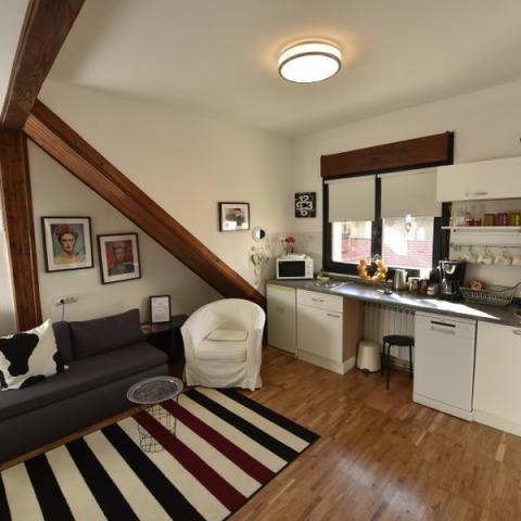 Die Apartments befinden sich in einem Innenhofgebäude im Zentrum von Zagreb in perfekter Lage. Neu, modern und komplett ausgestattet. Die Apartments verfügen über ein separates Schlafzimmer mit einem Doppelbett 140x200 und ein ausziehbares Bett für 2 Personen im Wohnzimmer. Sie verfügen über eine voll ausgestattete Küche (Kühlschrank, Kochplatte, Geschirrspüler, Mikrowelle, Toaster, Wasserkocher, Kaffeemaschine, Salz, Kaffee, Tee, ...), ein Esszimmer, ein Wohnzimmer und ein Badezimmer mit Handtüchern und Föhn Eines der Apartments verfügt über eine Waschmaschine. Jedes Apartment verfügt über einen LED-Sat-TV, kostenfreies WLAN und eine Zentralheizung. Klimaanlage, Bügeleisen ... Sie befinden sich nebeneinander und sind daher ideal für die Vermietung von Familien mit vielen Mitgliedern und so weiter. In unmittelbarer Nähe befinden sich die meisten Kulturdenkmäler und Sehenswürdigkeiten der Stadt Zagreb. In der Nähe des Bahnhofs und der Bushaltestelle. HNK entfernt 250 m, Jelačić-Platz 600 m, Botanischer Garten 250 m, Oberstadt 300 m ... Bizina Geschäft 50 m.