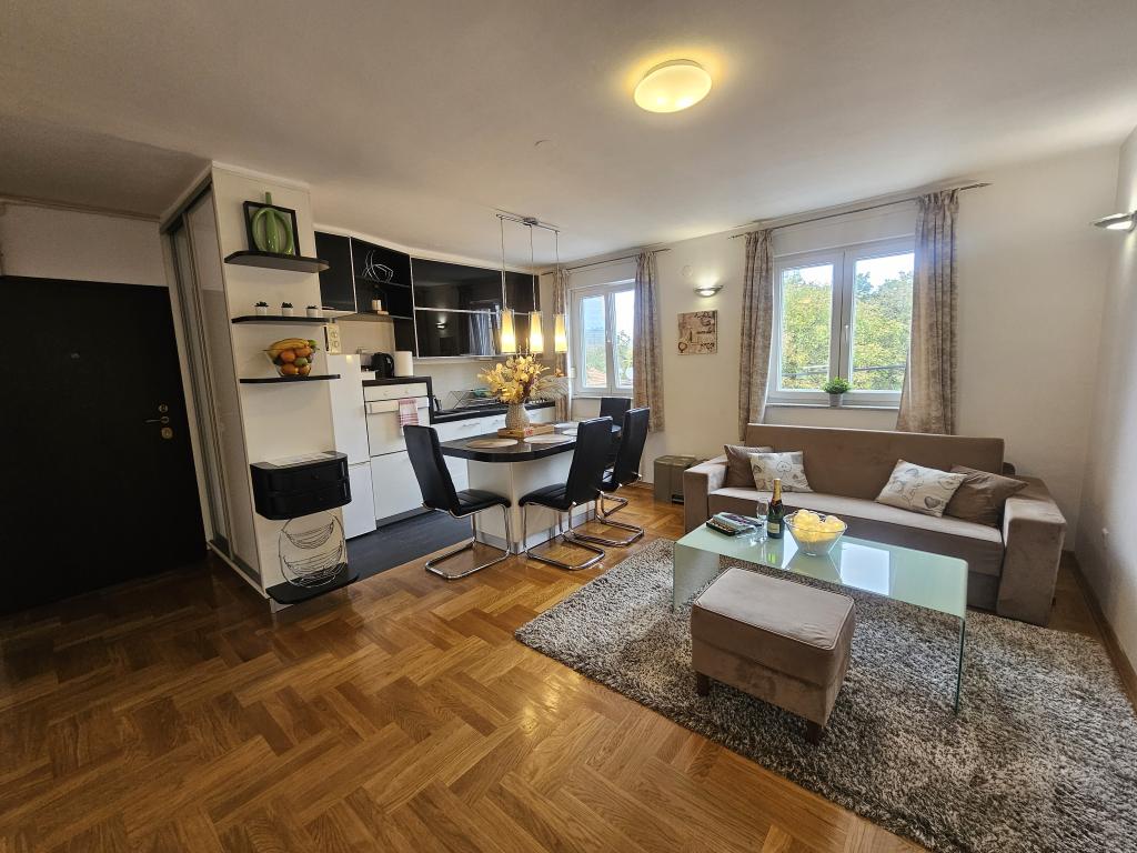 Die Apartments Tony befinden sich in einem neu gebauten und modernen Gebäude in Srednji (Knežija). Die Apartments befinden sich in einer außergewöhnlich ruhigen Straße, von der aus eine der größeren Verkehrsknotenpunkte im Westen der Stadt - die Selska-Straße und die Zagreb-Straße - nur 50 m entfernt ist. Die Dorfstraße in südlicher Richtung führt nach Jarun, dem wichtigsten Erholungszentrum von ganz Zagreb, und einem der Hauptziele für junge Leute in 2 km Entfernung auf der Suche nach allen notwendigen Sport- und Ausgehmöglichkeiten. Der nächste Konzumer Supermarkt befindet sich 120 m vom Apartment entfernt, Lidl erreichen Sie nach etwa 300 m und das nächste Restaurant und Café nach 100 m. ist die nächste Straßenbahnhaltestelle mit direkter Anbindung an die Innenstadt (7 Stationen - ca. 15 Autominuten). Die gute Verkehrsanbindung ermöglicht eine sehr schnelle Anreise der Gäste von den Autobahnen A1 und A2 sowie eine Abfahrt ins Zentrum von Zagreb (mit dem Auto in ca. 10 Minuten).
