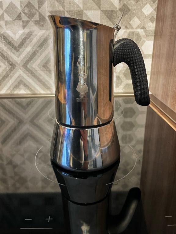 Verschiedene Kaffeesorten, Kaffeeweißer, Tees, Salz, Zucker, Grundgewürze, komplette Koch- und Zubereitungsausstattung für einen längeren Aufenthalt, Kaffeemaschine, Mikrowelle, Smoothie-Mixer, Toaster, Wasserkocher, Bialetti-Kaffeemaschine (Moka), Backofen, Kühlschrank, Gefrierschrank, Haartrockner, Waschmaschine, WLAN, Zentralheizung, Klimaanlage, Rauchmelder, sicherer Privatparkplatz...