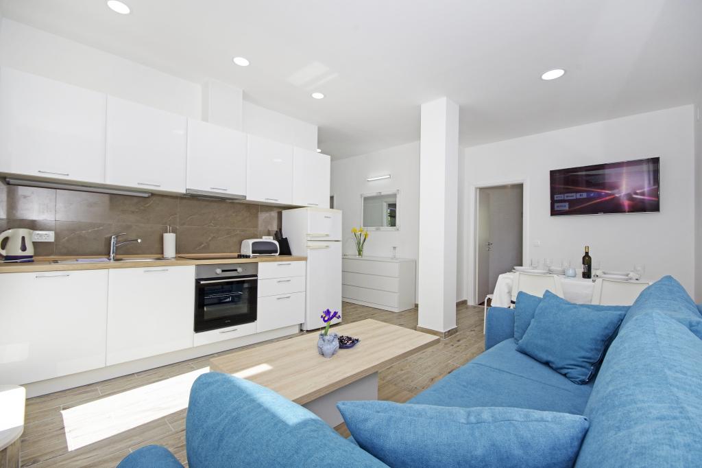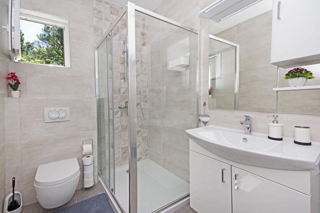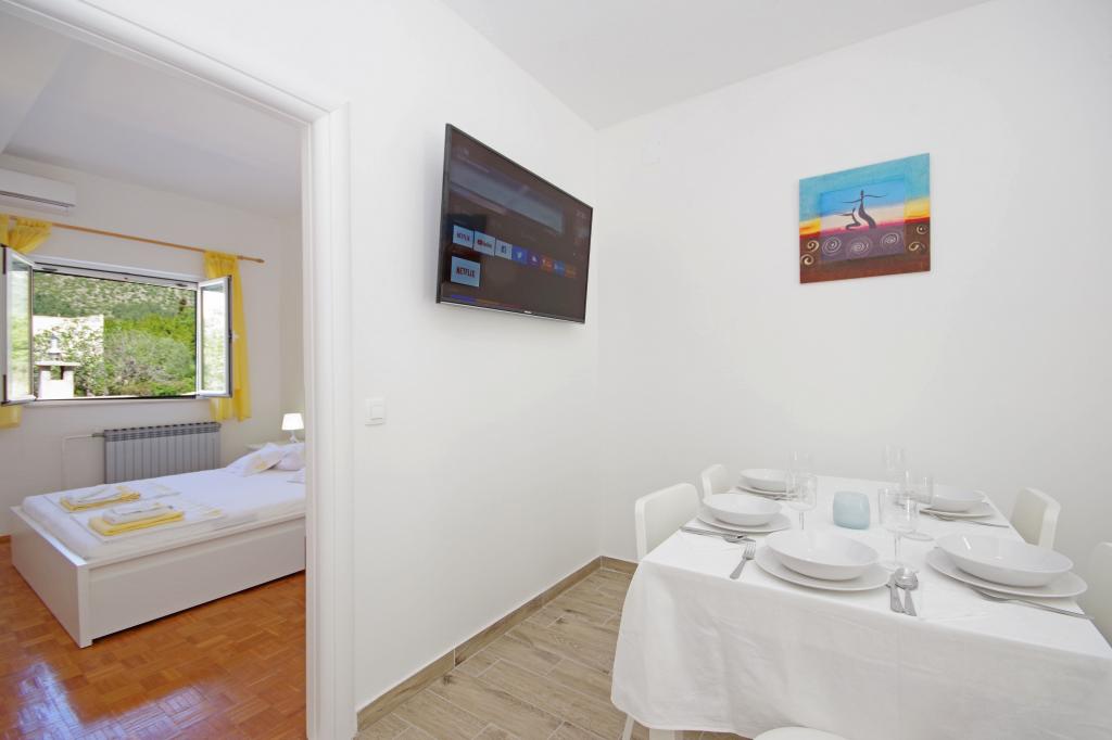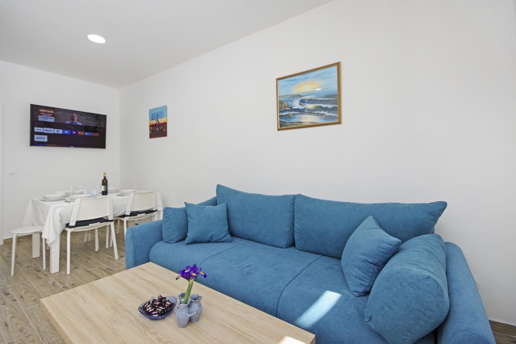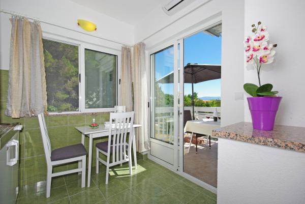 Ein toller Ort für einen tollen Urlaub. Der Besitzer - Gordana ist eine wundervolle, äußerst hilfsbereite und charmante Person, auf die Sie sich immer verlassen können. Die Wohnungen sind sehr sauber, gut ausgestattet mit den notwendigen Gegenständen. Ein weiterer Vorteil der Wohnung ist eine riesige Terrasse mit Meerblick und Stellplatz im Garten hinter dem Haus. Das Haus befindet sich in bester Lage - ganz in der Nähe des Strandes und der Geschäfte, aber gleichzeitig abseits der ausgetretenen Pfade, so dass Sie in Ruhe entspannen können. Zusammenfassend ist der beste Ort für einen schönen Urlaub!