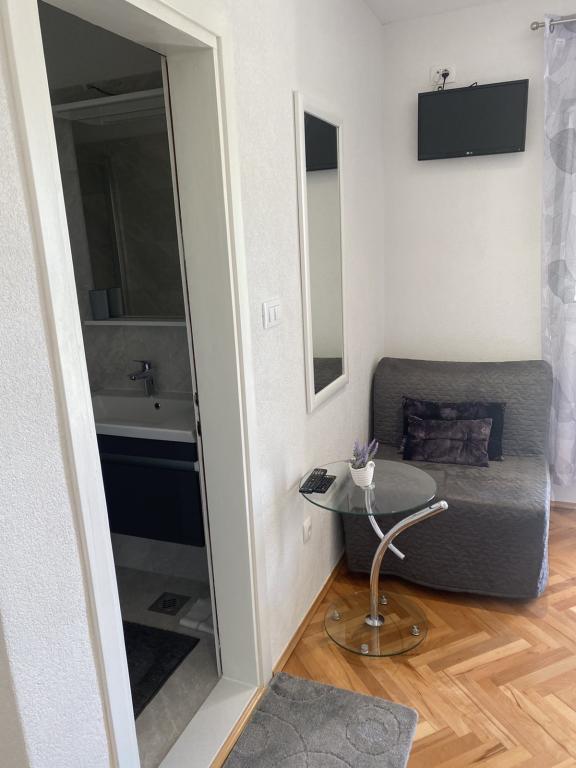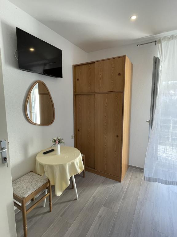 Die gastfreundlichen und fröhlichen Gastgeber heißen Sie in der angenehmen Atmosphäre eines Familienhauses in einem der schönsten Teile der Makarska Riviera herzlich willkommen. Dieses komfortable Anwesen liegt 100 m vom Stadtzentrum der berühmten dalmatinischen Stadt entfernt und gegenüber dem alten Franziskanerkloster und bietet alle Zutaten für einen erholsamen Urlaub: ein sauberes und geräumiges Zimmer, eine ausgestattete Küche, Klimaanlage und TV, Terrasse und gesichert Parkplatz. Wunderschöne Kiesstrände, nur 2 Minuten von der Unterkunft entfernt, vielfältige gastronomische Einrichtungen und ein sehr angenehmes Klima machen dem i ein Ende.