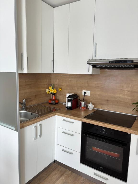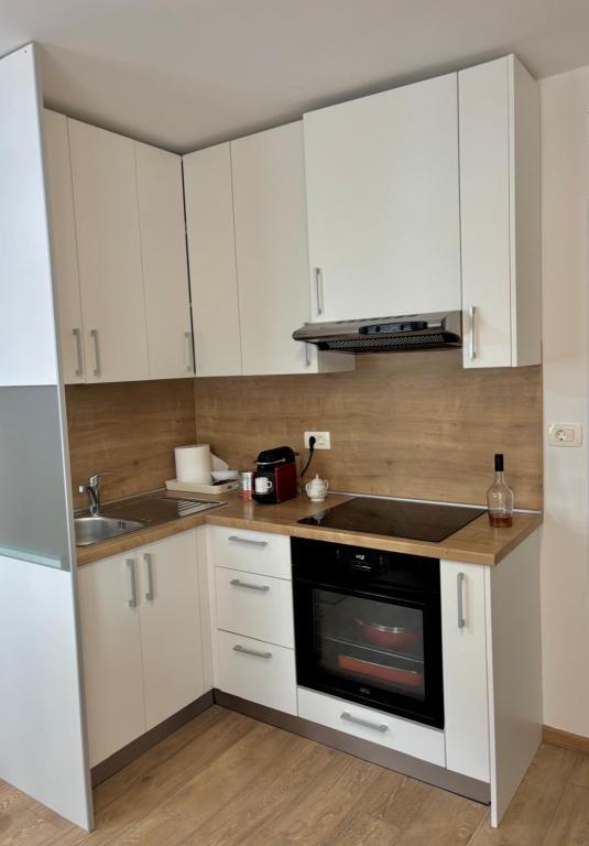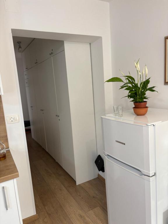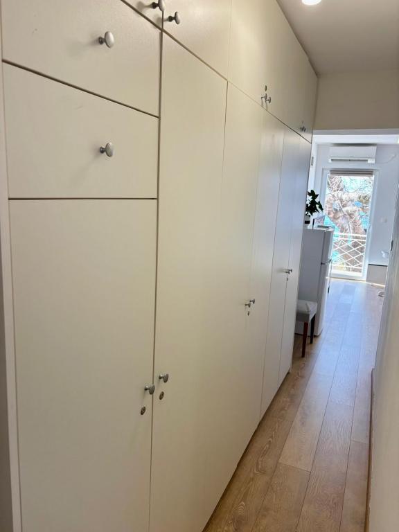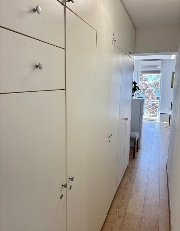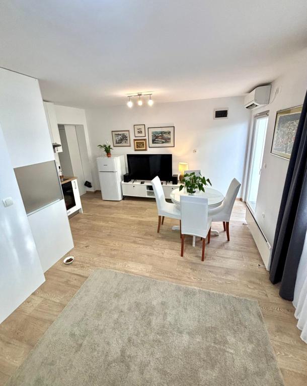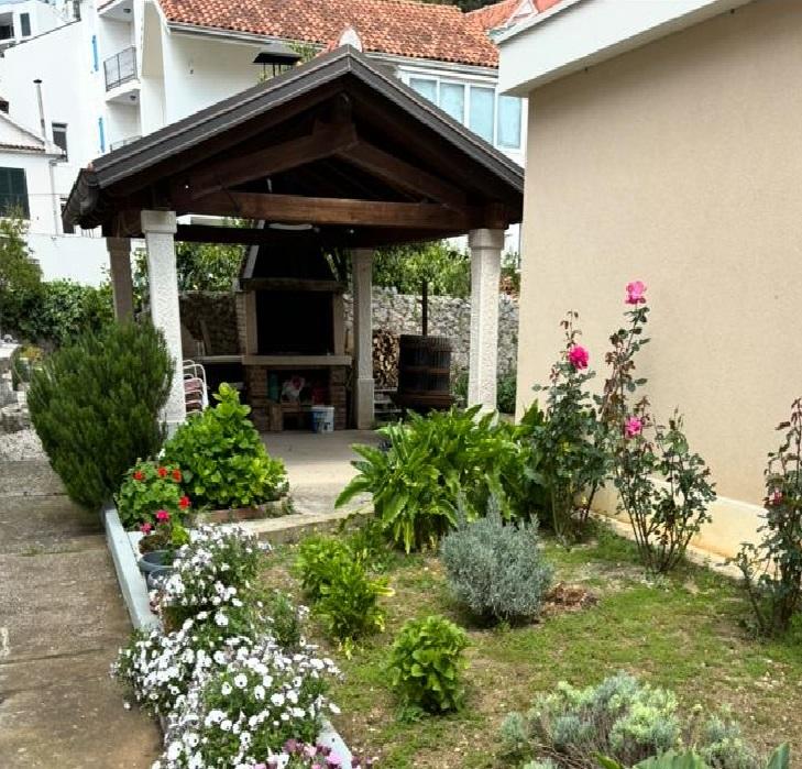 Das Studio-Apartment im ersten Stock eines Einfamilienhauses ist modern und komplett ausgestattet und liegt nur 30 m vom Meer und einem wunderschönen, flach abfallenden Kieselstrand entfernt. Vor dem Haus befindet sich ein Parkplatz, und im Garten gibt es einen Pavillon mit Grill und Tischen zum Verweilen im Schatten. In der Nähe finden Sie Geschäfte, Restaurants und eine Konditorei. Am Ortseingang liegt das Einkaufszentrum Plodine.