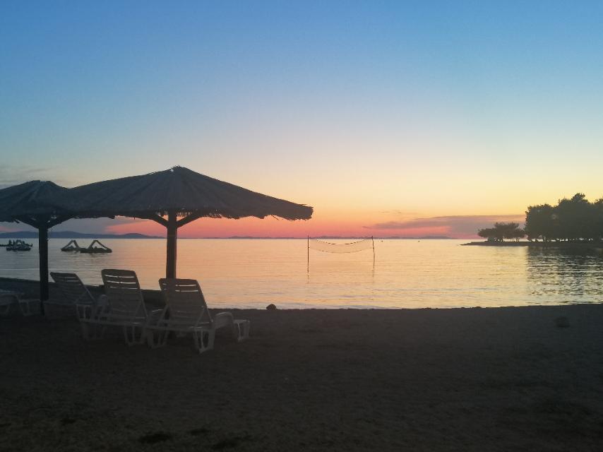 Alles ist wie auf dem Bild.. Sauber, angenehm, komfortabel, alles inklusive ... Alles, was Sie brauchen, ist Folgendes: Toaster, Wasserkocher, Backofen, 5-Gas-Herd, großer Geschirrspüler, Kühlschrank, Gefrierschrank, was auch immer. Die Besitzer sind freundlich, sie sind da, was auch immer Sie brauchen. Sie kümmern sich um alles und finden für alles eine schnelle Lösung... Hut ab... Dann eine Bäckerei, Fitness am Strand, Spiele am Strand, Märkte am Strand, Café und Eisdiele am Strand, Pfannkuchenmaschine, Toilette am Strand... All das von der Wohnung 150 m... Welt. .. Der Strand besteht aus kleinen Kieselsteinen und dann mindestens 300 m Wasser knapp über den Knien... Ideal für Kinder... Abends nach 18:00 Uhr können Sie kostenlos durch den Park des Zaton Camping Resorts spazieren Hier finden Sie aufblasbare Spiele, Karussells, Restaurants, Märkte... Wir werden dort hinkommen