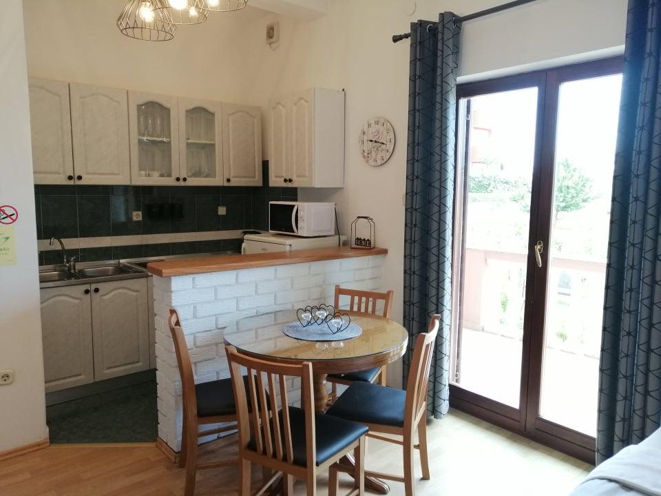 Eine sehr schöne Familienwohnung mit einem Spielplatz für Kinder. Eine komfortable Erholung für 4 Personen der Familie. Frisch dekoriert und sauber. Voll ausgestattete Küche. Sehr nette und gastfreundliche Gastgeber, die eine familiäre Atmosphäre schaffen. Wir werden auf jeden Fall wiederkommen.