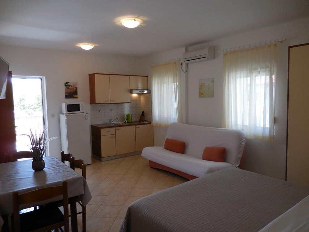 Wir bieten 5 komfortable Apartments, komplett ausgestattet, umgeben von einem großen Garten von ca. 2250 m2, in Olivenhainen, in einer ruhigen Gegend von Zaton. Das Anwesen ist ca. 100 m vom Meer entfernt und die gleiche Entfernung vom ersten, nächsten Sandstrand, ca. 100 m. Die Strände sind hauptsächlich Sand- und Kiesstrände, aber es gibt auch Beton- und Felsstrände. Die Entfernung vom Eingang zum Ferienort Zaton beträgt weniger als 100 m. Alle Wohnungen sind klimatisiert, TV, Satellit, der Preis beinhaltet auch Wi-Fi, Bettwäsche, Handtücher, die Möglichkeit der Nutzung eines Grills und einer Überdachung mit Gartenmöbel im Hof. Gesicherte Parkplätze im Hof. Jede Wohnung hat einen eigenen separaten Eingang, eine eigene Terrasse. Unseren Gästen stehen ein großes Schwimmbad, ein Trampolin und ein Kinderspielplatz zur Verfügung.