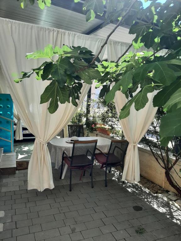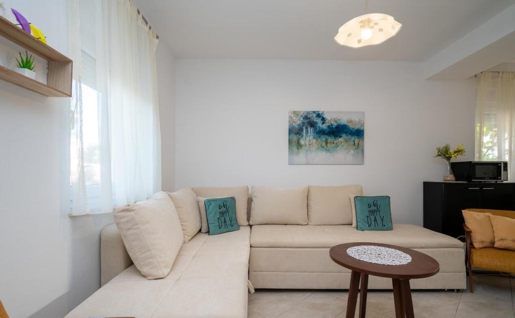 Sanja und ihre Familie ist wirklich sehr nett und hilfsbereit. Das Apartment und die Terasse sind schön. Wir hatten einen tollen Empfang und einen herzlichen sehr abschied. Sind nun schon das zweite mal hier und werden bestimmt noch öfter kommen. Es gibt einen Strand (Steinen) ganz in der Nähe und ein zweiter Strand (mit Sand und kleinen Kies, ein kleiner (Spielplatz und eine Strandbar) ca. 2 min. Mit dem Auto. Dieser ist perfekt für kleine Kinder (Meer ist dort sehr flach). Hier gibt es auch ein paar Sonnenschirme und Liegen und einen großen Parkplatz. Etwas weiter entfernt ist noch ein Strand wo man diverse Souvenirs und Badesachen kaufen kann. Dort ist auch ein Strandcafe, Spielplatz und ein kleiner Bäckerladen. Wir hatten einen wunderschönen Urlaub hier und kommen gerne wieder.