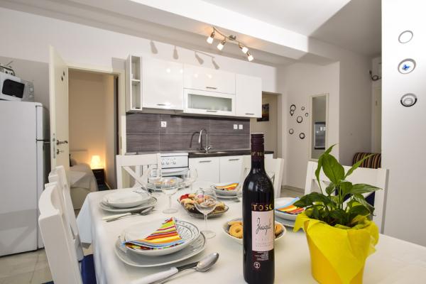 Ausgezeichnete Gastgeber, moderne Apartments, ruhiger Ort, ideal für kleine Kinder, flaches, sandiges, warmes Meer, ideal für kleine Kinder. Herzliche Empfehlung.